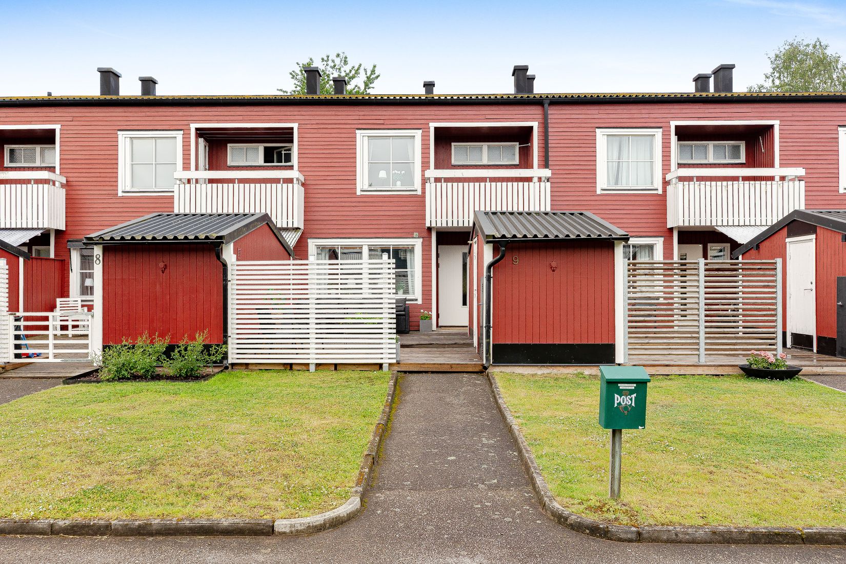 Bostaden erbjuder två badrum – det ena med badkar och en praktisk tvättmaskin, vilket underlättar vardagen. Det andra badrummet är helkaklat och stilfullt gjort. De tre sovrummen på övre plan ger gott om plats för hela familjen. Här finns även utgång till en härlig balkong, där du kan njuta av morgonkaffet i solen eller koppla av med en bok.