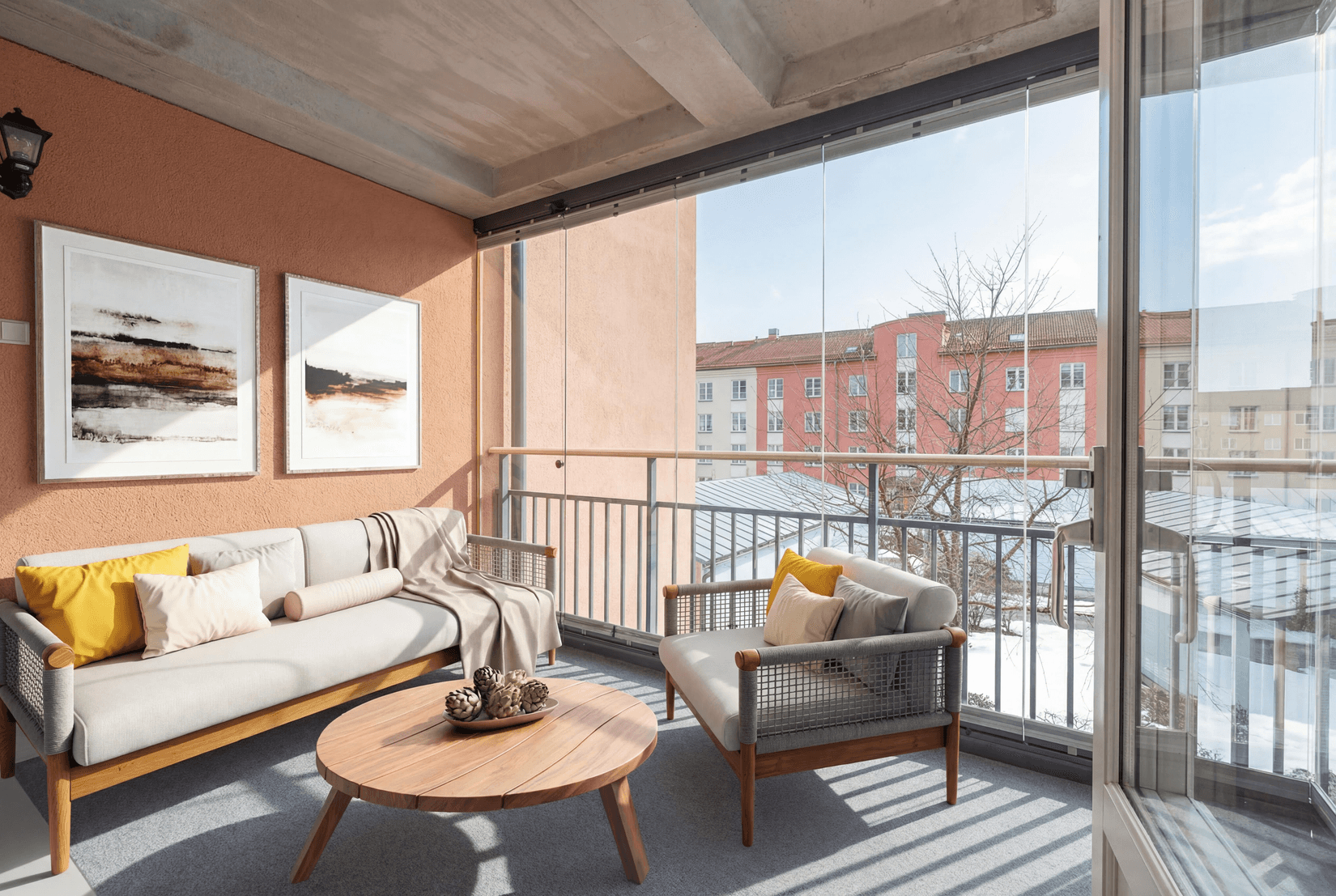 Bostaden präglas av goda ytor och ljusa rum. Med en planlösning som både är funktionell och social. Här finns ett generöst kök med matplats och ett härligt burspråk. Vardagsrummet är luftigt och tar dig vidare ut till bostadens pärla, en stor inglasad balkong med en härlig eftermiddagssol. Två sovrum ger flexibilitet för familj, hemmakontor eller gästrum. En inre hall knyter ihop bostaden på ett smart sätt och det rymliga badrummet erbjuder både tvättmaskin och torktumlare. Möblemanget är ett fotomontage för att ge inspiration, bostaden står tom och är redo för ett snabbt tillträde.