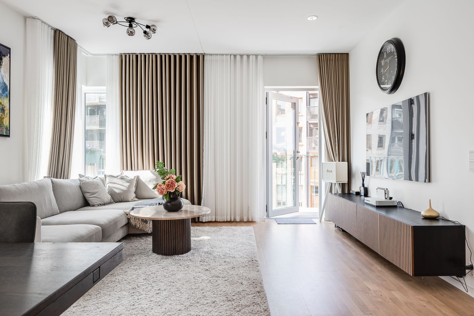 Välkommen till ett hem där stilren design möter komfort och funktion mitt i eftertraktade Limhamns Sjöstad! Denna exklusiva trerummare genomsyras av smakfulla materialval, stilren interiör och smart planlösning som bjuder in till både sociala tillställningar och vardagslyx. Du möts av luftig och välkomnande hall med platsbyggd sittbänk, modern panelvägg och god förvaring som blir ett första smakprov på bostadens genomtänkta design. Härifrån leds du vidare till ett påkostat badrum i sobra stenbeiga toner där dusch bakom glasväggar samsas med tvättmaskin, torktumlare och praktisk förvaring – allt för att underlätta din vardag. Vidare väntar ett stilrent kök i grått utförande med full maskinpark, generösa arbetsytor och gott om förvaring. Den öppna planlösningen mot vardagsrummet skapar en inbjudande och social yta där stora fönsterpartier och balkong fyller rummet med ljus. Matplatsen rymmer enkelt 6 personer och vardagsrummet är perfekt för både mysiga hemmakvällar och större sammankomster. Bostadens två sovrum ligger rofyllt avskilda från de sociala ytorna. Det större sovrummet har plats för en större dubbelsäng och erbjuder gott om förvaring i form av garderobsvägg. Det mindre rummet kan nyttjas som barnrum eller hemmakontor och passar perfekt för den moderna familjen. En ytterst välplanerad bostad med påkostade materialval, tidlös färgskala och en atmosfär som andas exklusivitet. Perfekt för dig som vill bo modernt, bekvämt och stilfullt i Limhamns mest attraktiva område.