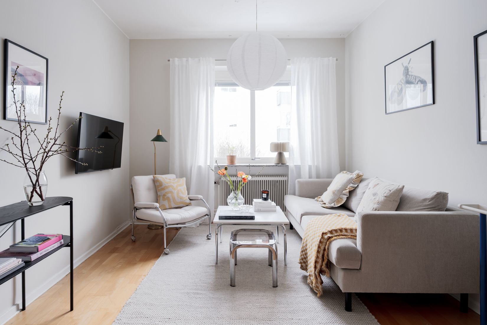 Det helkaklade badrummet är fräscht och funktionellt med dusch, och hallen erbjuder praktisk förvaring samt ett välkomnande första intryck. Sammantaget är detta en bostad som känns både hemtrevlig och funktionell – perfekt för förstagångsköparen, studenten eller som övernattningslägenhet.