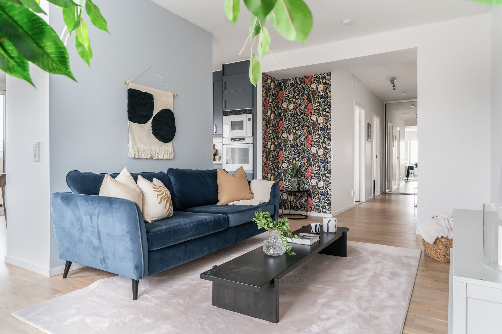 På tredje våningen finner vi denna välplanerade lägenhet om tre rum och kök. Bostaden präglas av en genomtänkt och modern planlösning där den ljusa färgsättningen skapar en trivsam och enhetlig känsla. Det stilrena och behagligt blå köket från Vedum erbjuder generösa arbetsytor och gott om förvaring, perfekt för både vardag och sociala tillfällen. Lägenheten erbjuder två rymliga sovrum som ger gott om plats för både vila och förvaring. Det helkaklade badrummet är utrustat med skön golvvärme och både tvättmaskin och torktumlare, vilket underlättar vardagens bestyr.