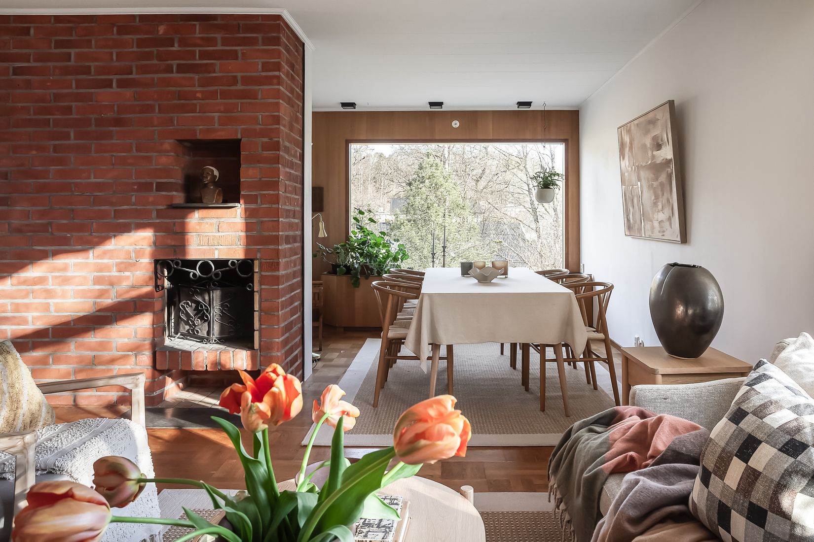 Till huset hör en grönskande trädgård där du på våren fångas av det vackert blommande körsbärsträdet. Gräsytor för lek och umgänge och oändliga möjligheter för den trädgårdsintresserade.