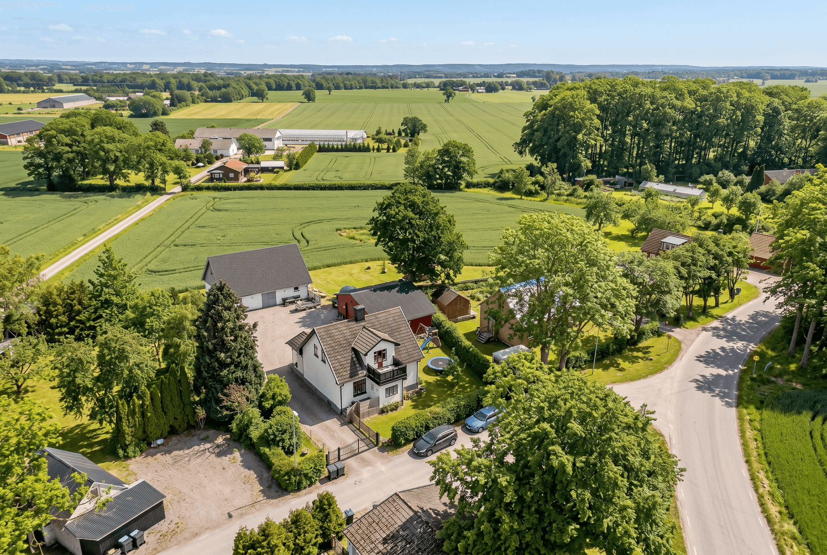 De kompletterande byggnaderna tillför en extra dimension till fastigheten. Stallbyggnaden från 2018 och verkstads-/garagebyggnaden ger möjligheter för dig som önskar utrymme för hobbyverksamhet, djurhållning eller mindre verksamhet i hemnära form. Detta kan ske utan att störa bostadsdelen, vilket skapar en god balans mellan privatliv och praktiska behov.