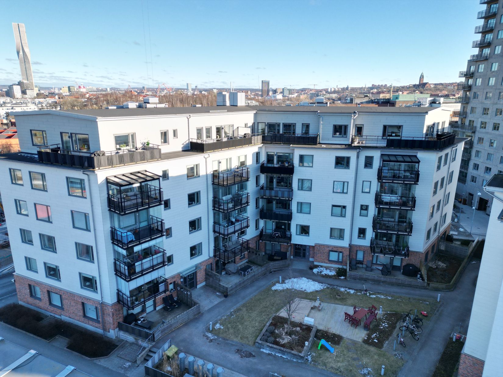 Härlig balkong om cirka 6 kvm i bästa västerläge med mycket sol. Här ryms med lätthet en loungemöbel och kanske en grill för sköna sommarkvällar i goda vänners lag.