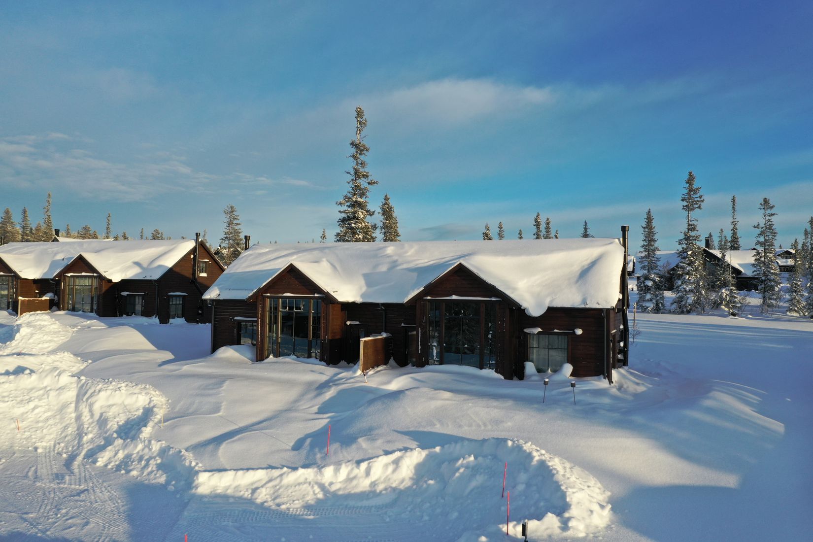 Huset har ett stort vardagsrum med öppen planlösning till köket och gott om plats för hela sällskapet. Tre sovrum skapar fina förutsättningar för en härlig fjällvistelse med släkt och vänner. De yngre i familjen spenderar gärna kvällen i allrummet på övervåningen där de kan kika ner på de vuxna genom glasräcket. Ni vuxna njuter av lugnet och den sköna tröttheten i kroppen som uppstår efter en dag på skidor, uppkrupna i soffan medan mörkret sänker sig utanför stugan.