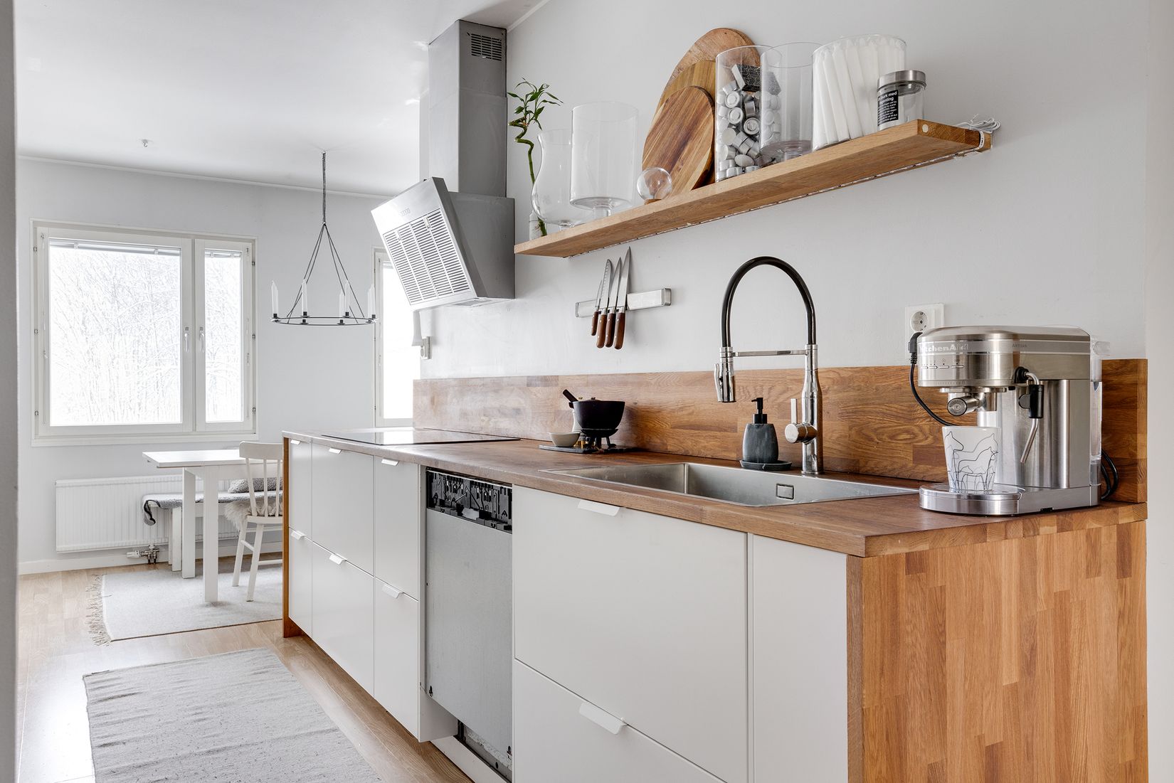 Bostaden präglas av en genomtänkt planlösning där kök och vardagsrum samspelar på ett naturligt sätt. Köket är smakfullt utformat med goda arbetsytor och förvaring, vilket gör det till en självklar samlingspunkt i vardagen. Vardagsrummet rymmer enkelt större soffgrupp och har ett fint ljusinsläpp som skapar en luftig och inbjudande känsla. Från vardagsrummet nås den rymliga inglasade balkongen – ett extra rum större delen av året och en perfekt plats för såväl morgonkaffet som långa kvällar i goda vänners lag.