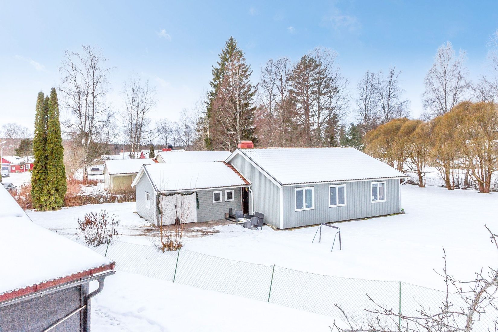 Bostaden har en boyta om 91 kvm samt 36 kvm biarea. Den plana och lättskötta trädgårdstomten erbjuder fina ytor för lek, odling eller avkoppling – en härlig miljö för hela familjen.