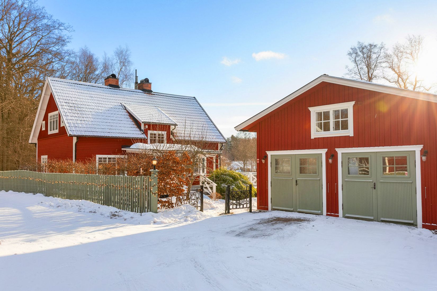 Den klassiska röda villan med vita knutar och inbjudande veranda välkomnar med en självklar känsla av hemtrevnad. Här bor ni i ett hus med själ och historia, där tidstypiska detaljer samsas med varsamma renoveringar. Hemmets hjärta är det generösa lantköket med charmigt skafferi är en plats för både vardagens lugn och livets firanden. Vedspis och öppen spis skapar en varm, ombonad atmosfär och från köket nås verandan i soligt söderläge, med sol från sen morgon till tidig kväll. Verandan, delvis under tak, som blir en naturlig förlängning av bostaden under stora delar av året.