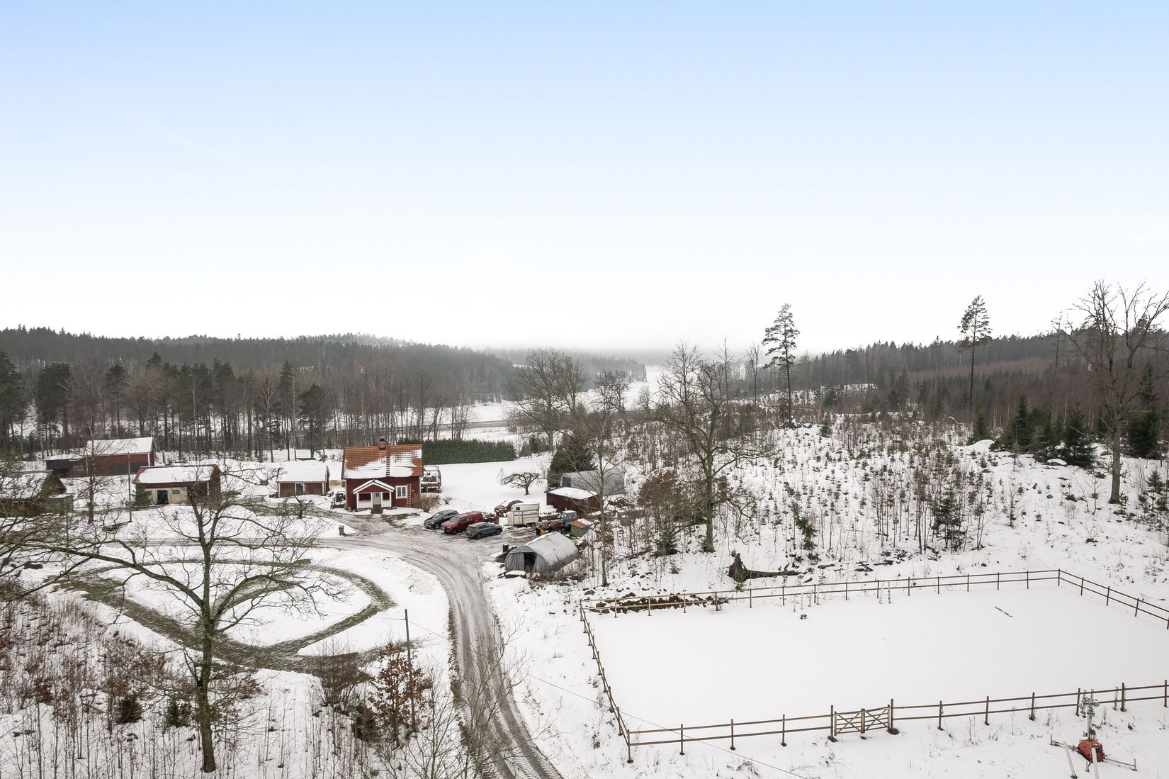 Marken omfattar ca 5 hektar skog, 3 hektar betesmark och 1 hektar övrig mark enligt säljaren, vilket ger oändliga möjligheter för djurhållning, odling eller rekreation. Den natursköna tomten ger stor integritet och ett rofyllt läge, omgiven av öppna landskap och grönska.