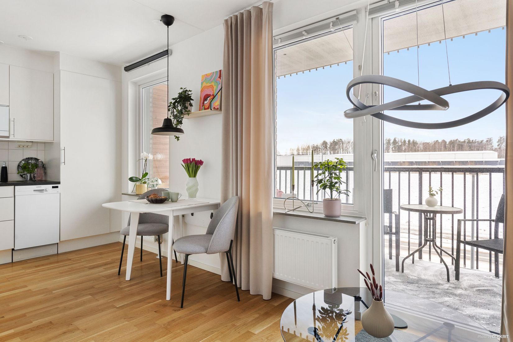Lägenheten erbjuder allt du behöver i ett yteffektivt format. Sovalkoven rymmer en bred säng och skapar en naturlig avskildhet från övriga ytor. Köket har gott om förvaring och bra arbetsytor, vilket gör matlagningen både enkel och trevlig. Badrummet är lagom stort och utrustat med dusch samt kombinerad tvättmaskin och torktumlare. Förvaringen är generös med flera garderober och ett vindsförråd. Pricken över i:et är den stora balkongen i perfekt syd-/västläge – här kan du njuta av solen från lunchtid ända till solnedgång! Balkongen har helt fritt läge utan insyn och utsikt över ett öppet fält.