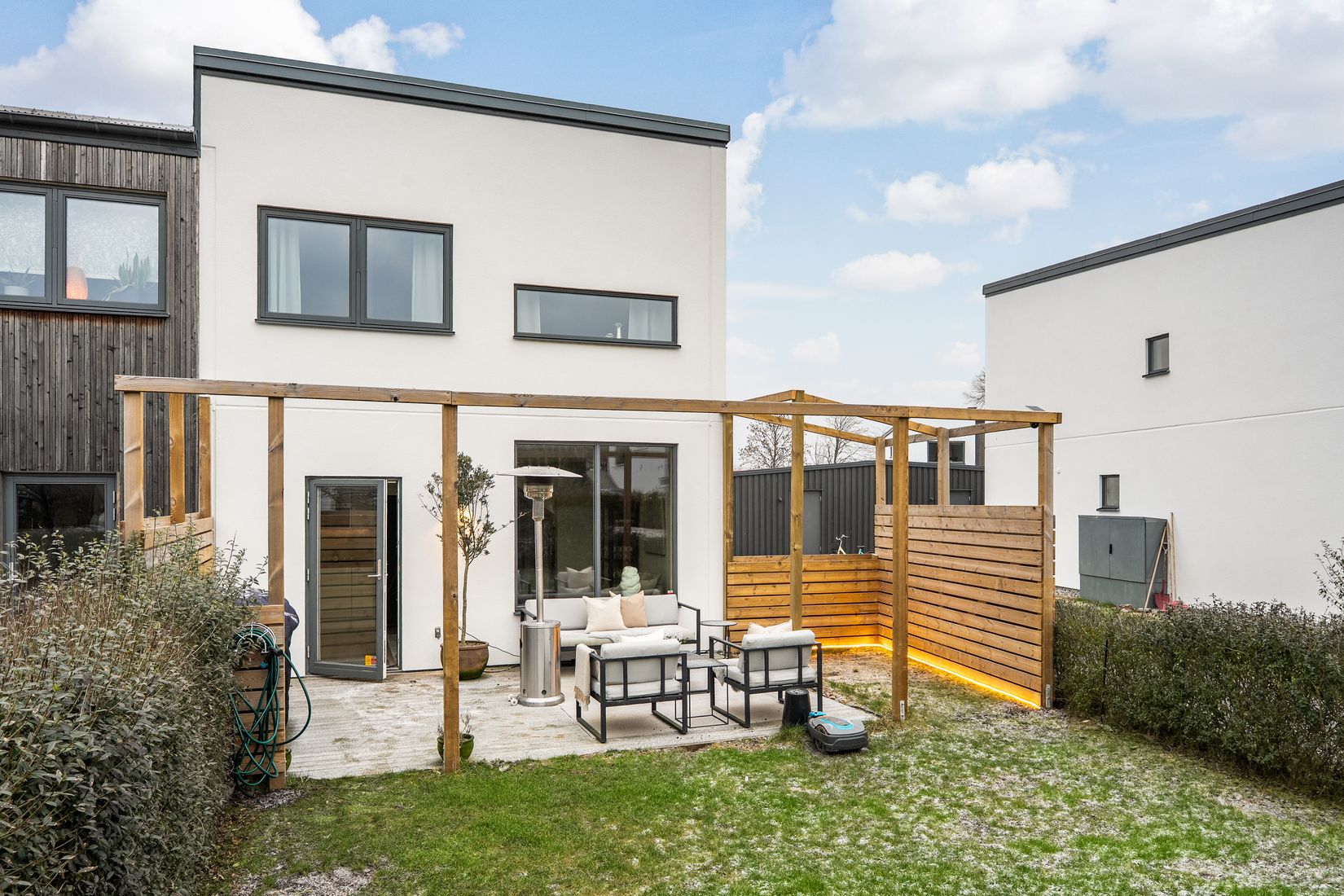 Drömmen om ett modernt och inbjudande hem blir verklighet i detta vackra radhus i barnvänliga Klågerup. Här möts ni av ett ljusfyllt och stilsäkert boende med generösa fönsterpartier som släpper in solen och skapar en varm, behaglig atmosfär i varje rum. Entréplanets öppna ytor binder elegant ihop vardagsrum och kök i en harmonisk helhet, där det vita köket står som en stilfull mittpunkt med både funktion och design i fokus.