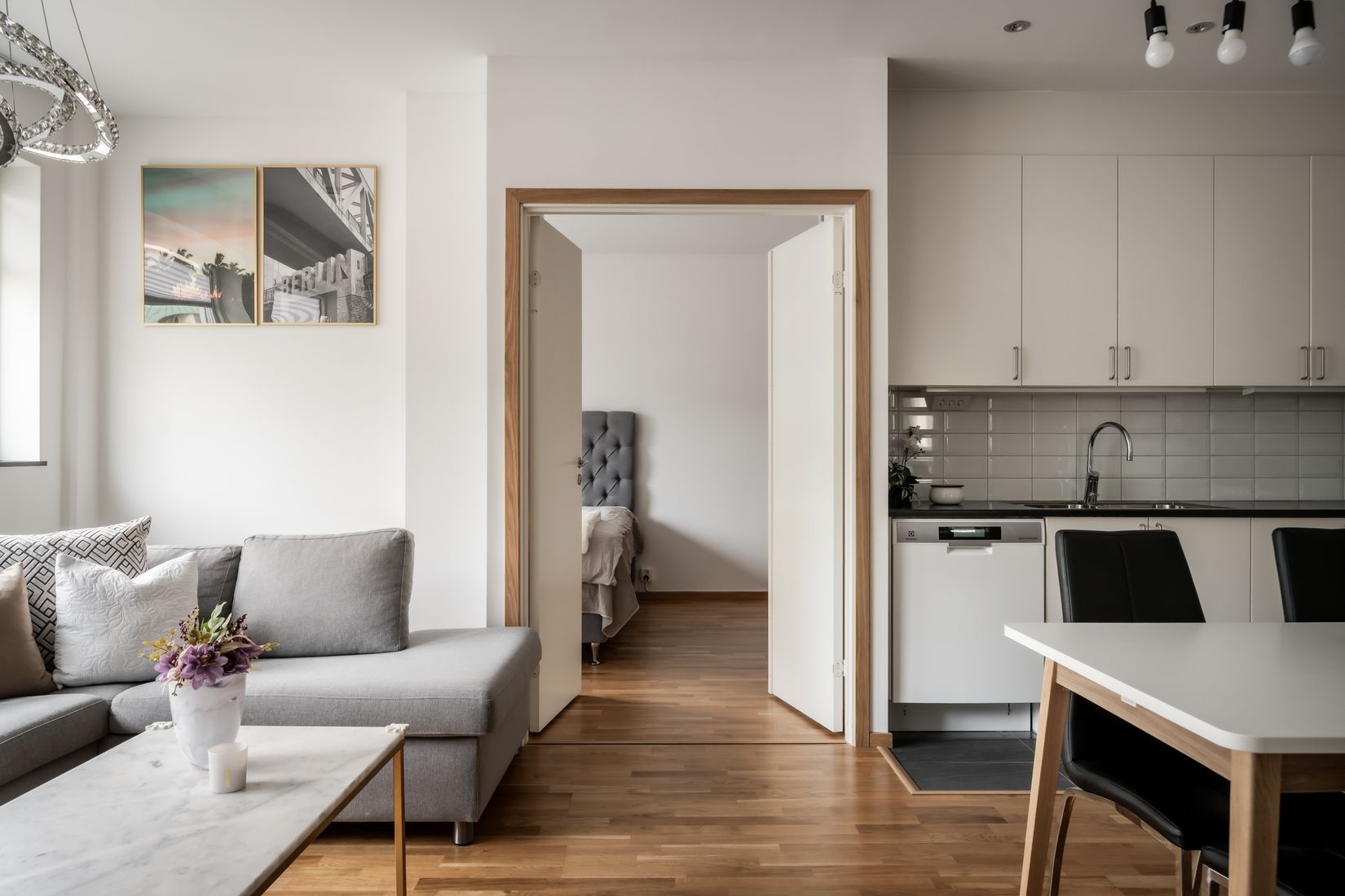 Välkommen till en hemtrevlig bostad som producerades 2018 och är i mycket gott skick, här är det bara att flytta rakt in. Bostaden är belägen i ett bekvämt våningsplan utan trappor. Rymlig 2:a på 59 kvm som fördelar sig på kök och vardagsrum i öppen planlösning, ett väl tilltaget helkaklat badrum utrustat med kombinerad tvättmaskin/torktumlare samt ett stort sovrum med tillhörande klädkammare. Utöver detta finns även ett mindre rum som passar utmärkt som hemmakontor eller extra förvaring. Bostaden har genomgående enhetliga parkettgolv och vitmålade väggar vilket skapar en ljus och harmonisk helhet i hela bostaden. Föreningen gör en avsättning om cirka 200 kr per månad till den inre reparationsfonden. I dagsläget uppgår saldot till cirka 18 000 kr, en fin möjlighet för den som önskar sätta sin egen prägel på bostaden.