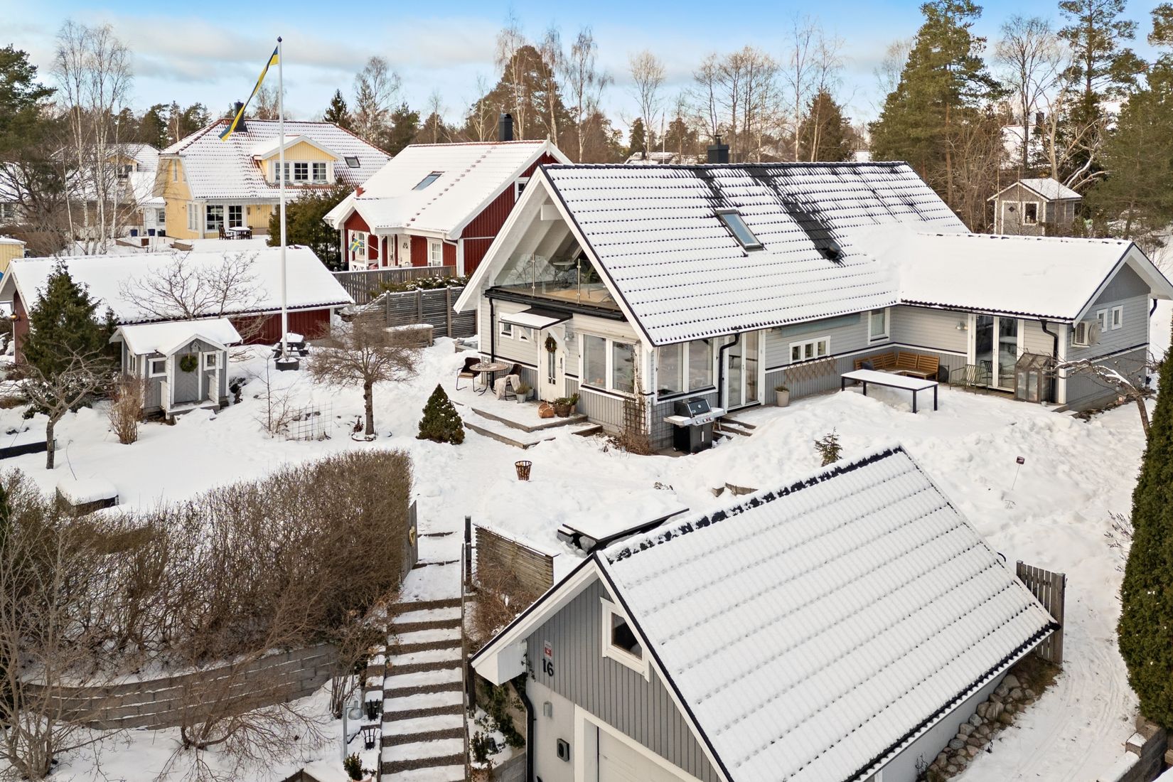 Husets utemiljöer är väl genomtänkta med sitt altanområde där ni finner pergola, ute spa samt gott om utrymme för loungegrupp, matgrupp och utekök. Tomten inbjuder till lek och trevlig samvaro, lekstugan är ett populärt tillhåll för de mindre.