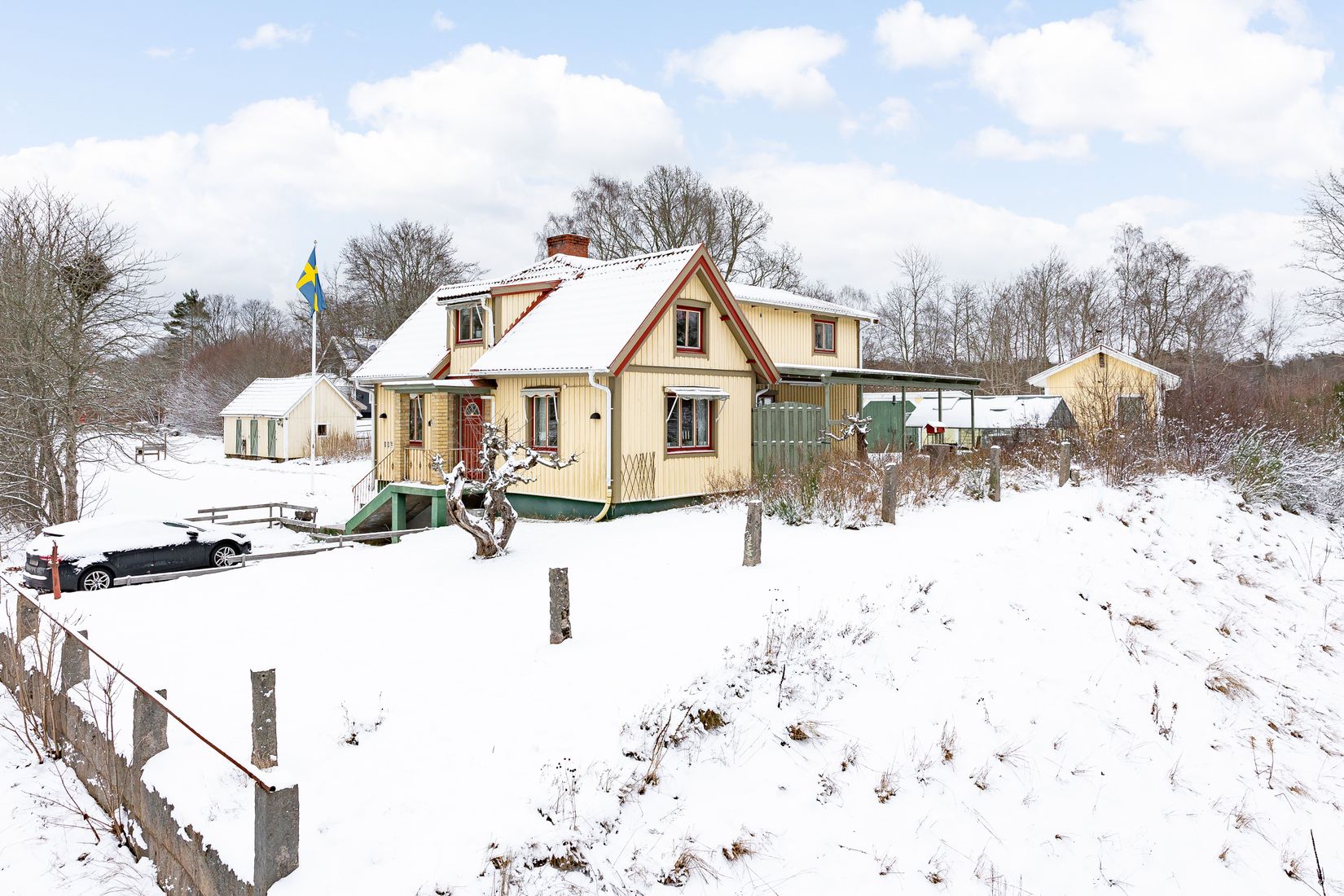 Utemiljön kompletterar helheten på ett genomtänkt sätt. I anslutning till bostadshuset finns en generös altan under tak, utrustad med elstyrd markis, vilket skapar en användbar uteplats stora delar av året. Intill ligger ett växthus som ger goda förutsättningar för odling. Stallbyggnaden rymmer idag två boxar och vittnar om fastighetens tidigare användning med hästhållning. I direkt anslutning finns även ett vagnslider samt en separat byggnad med generösa förrådsutrymmen. Tillsammans skapar dessa byggnader goda möjligheter för verksamhet, förvaring, hobby eller vidare utveckling utifrån behov.