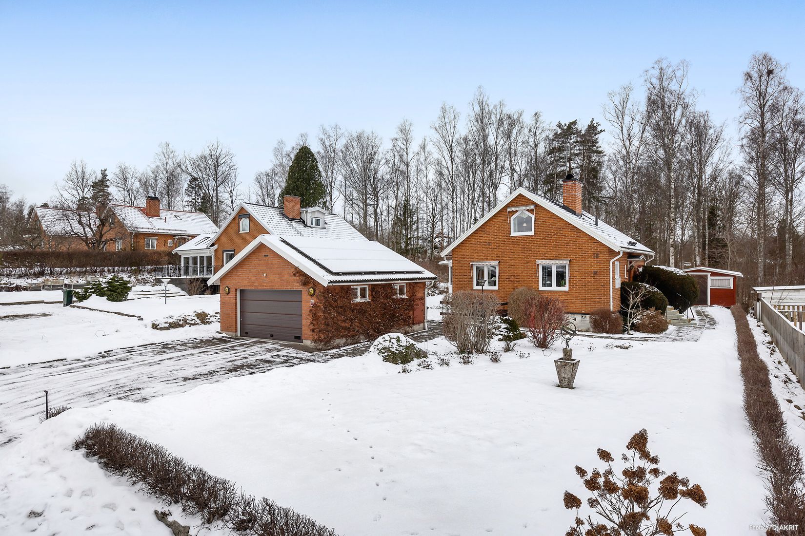 På tomten står dessutom ett rymligt dubbelgarage med fjärrstyrd port samt indraget vatten och värme.