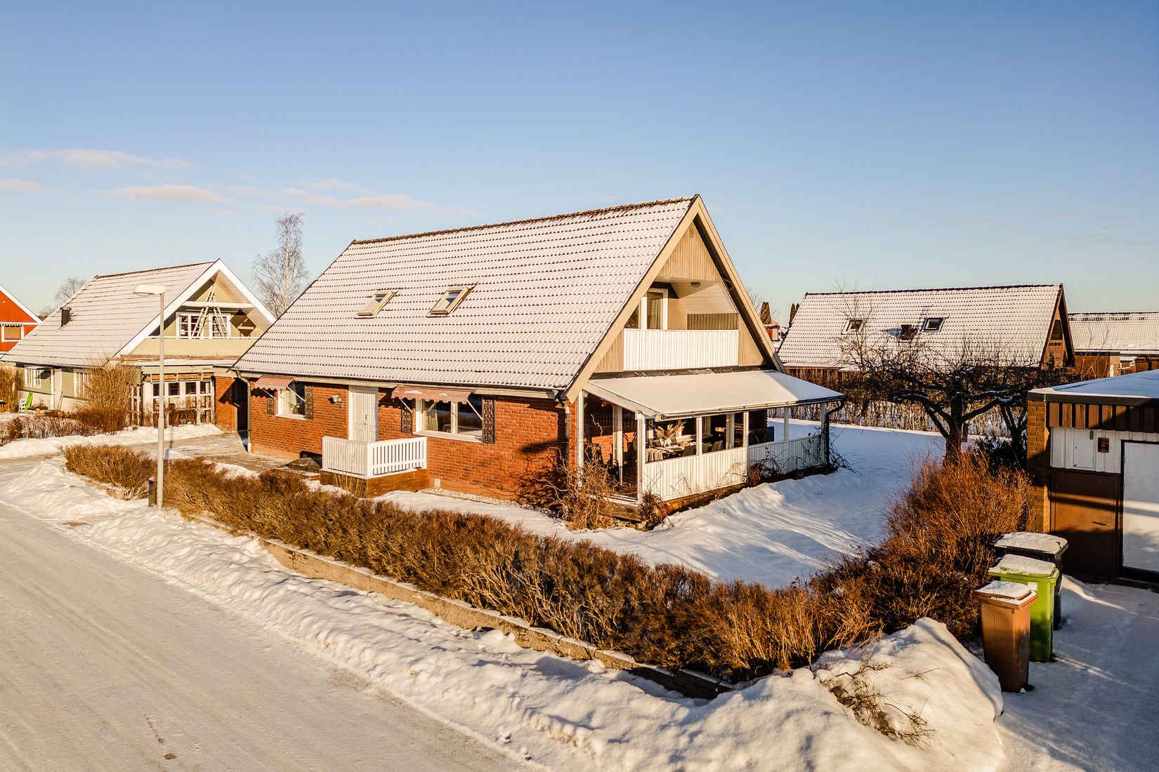 Trädgården bjuder på generösa gräsytor som passar utmärkt för både lek och avkoppling. Här finns ett inglasat uterum som förlänger utesäsongen samt ett spabad som ger möjlighet till avkopplande stunder i en privat och trivsam miljö.