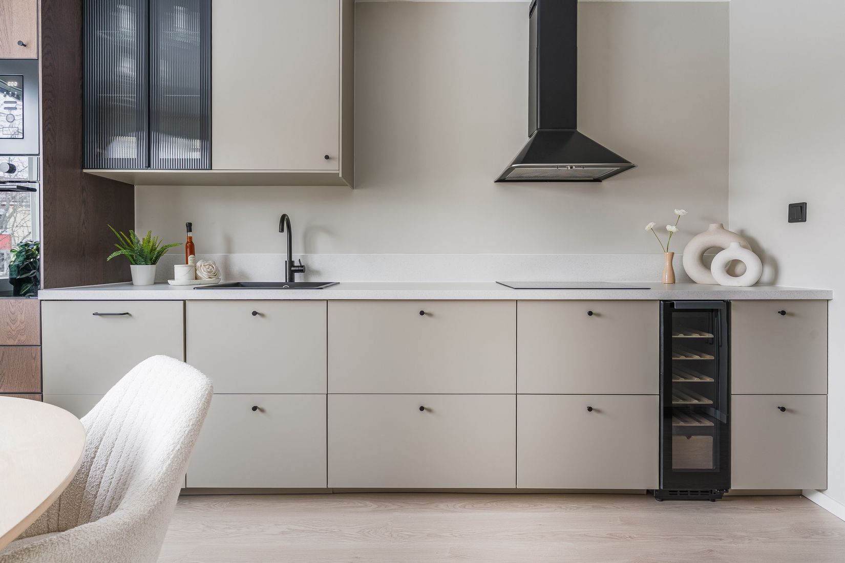 Bostaden upplevs ljus, lugn och inbjudande med en genomtänkt planlösning som gör det lätt att känna sig hemma. De ljusa ytskikten och det enhetliga golvet skapar ett fint flöde mellan rummen. Köket, som renoverades 2025, är både stilrent och välutrustat med vinkyl som en lyxig detalj. Vardagsrummet erbjuder generösa ytor för både avkoppling och middagar med vänner, och härifrån kliver du rakt ut på balkongen som blir en uppskattad plats under årets varmare månader. Sovrummen präglas av en rofylld atmosfär och flexibel användning, perfekt för både vila, arbete och gäster. Ett hem som känns både funktionellt och harmoniskt.