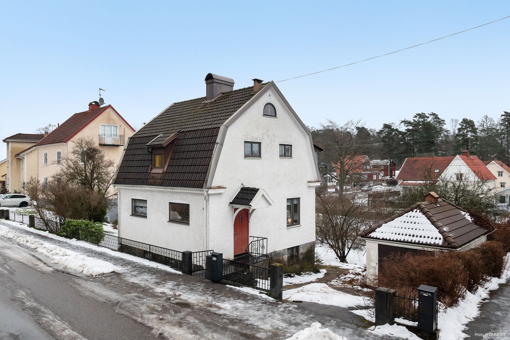 På entréplan möts du av ett ljust och inbjudande vardagsrum, perfekt för både vardag och umgänge. Här finns även ett kök, samt wc och dusch – praktiskt och funktionellt för familjelivet.