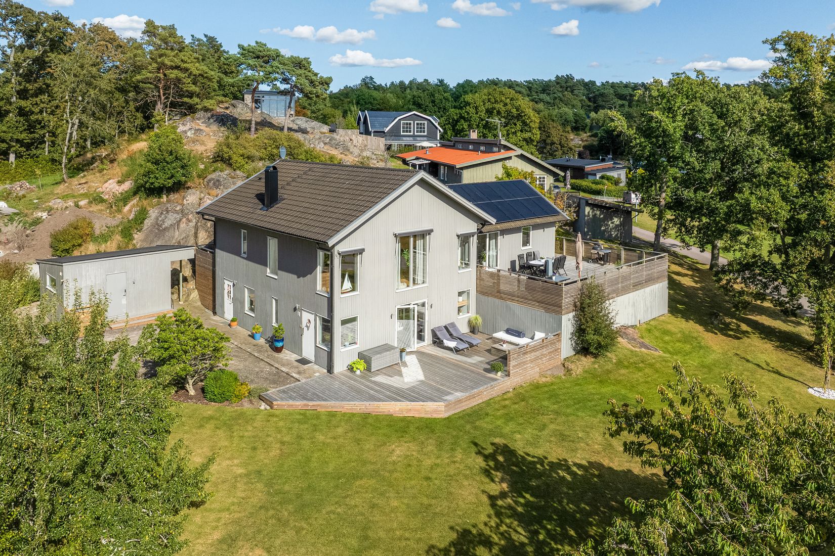 Här erbjuds en modern och mycket attraktiv familjevilla i eftertraktade Malevik – ett hem som kombinerar stilren arkitektur, generösa ytor och ett fantastiskt naturnära läge till både skog och hav. Villan är vackert belägen på en insynsskyddad, lummig tomt och genomsyras av rymd, ljus och en väl genomtänkt planlösning som passar den stora familjen. Villan är utrustad med ny värmepanna och solpaneler som ger låga uppvärmningskostnader och hög energieffektivitet.