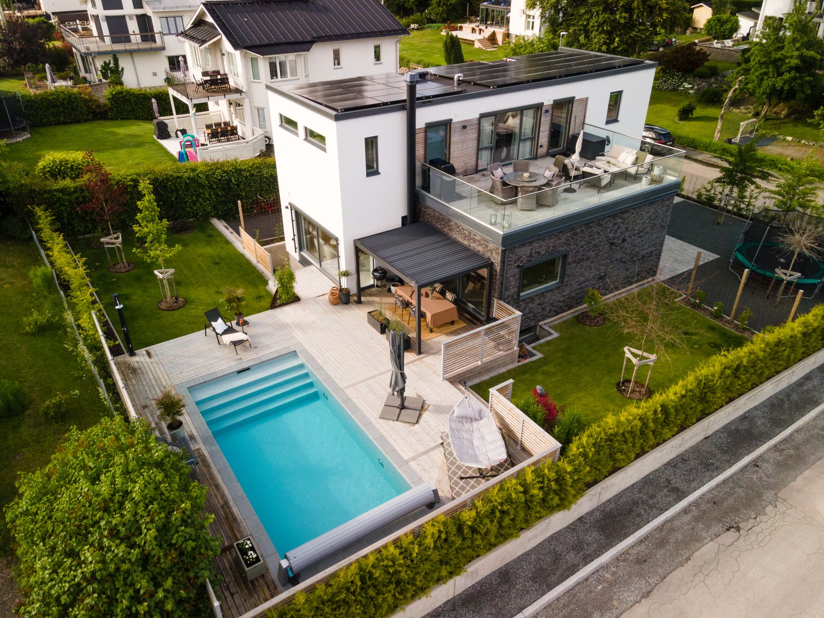 Huset som stod klart 2022 har noga utvalda materialval som genomsyrar smakfullhet och tidlös design. Utan att ha kompromissat med bekvämligheten är huset utrustat med det senaste inom teknik så som solcellsanläggning med batterier som producerar 10 0000 kWh/år, elbilsladdning 2 st á 11 Kw AC, FTX-ventilation med återvinning, fiber med förstärkning på varje plan, inne- och utomhusbelysning som styrs via Plejd, centraldammsugare för samtliga tre våningar, bergvärme, frikyla/AC m.m.. Utöver detta återfinns en relaxavdelning med bastu och dusch för extra avkoppling. Läs gärna mer under dokument för detaljerad info.