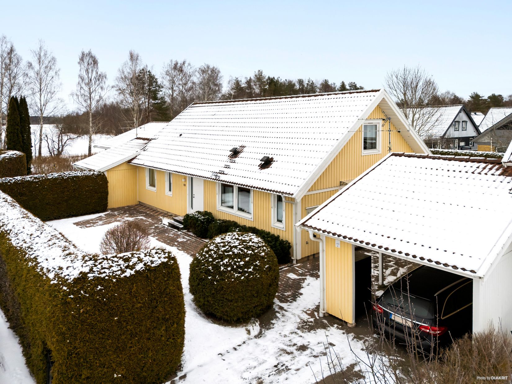Entréplan fördelas på stort, modernt kök med nya maskiner, rymligt och ljust vardagsrum med utgång till delvis inbyggd/inglasad altan mm. Tre sovrum med fina förvaringsutrymmen, nyrenoverat duschutrymme, rymlig hall och en nyrenoverad tvättavdelning/groventré. På övervåningen stort bad/bastu/duschutrymme med relaxdel, rymligt allrum samt ytterligare ett sovrum. Till huset hör dessutom carport med rymligt förråd.