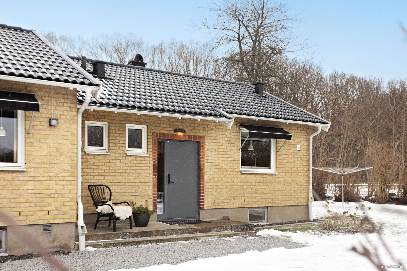 Gedigen enplansvilla med källare/krypgrund och gjutet valv. Underhållsfri tegelfasad, isolerglasfönster och tak med betongpannor.