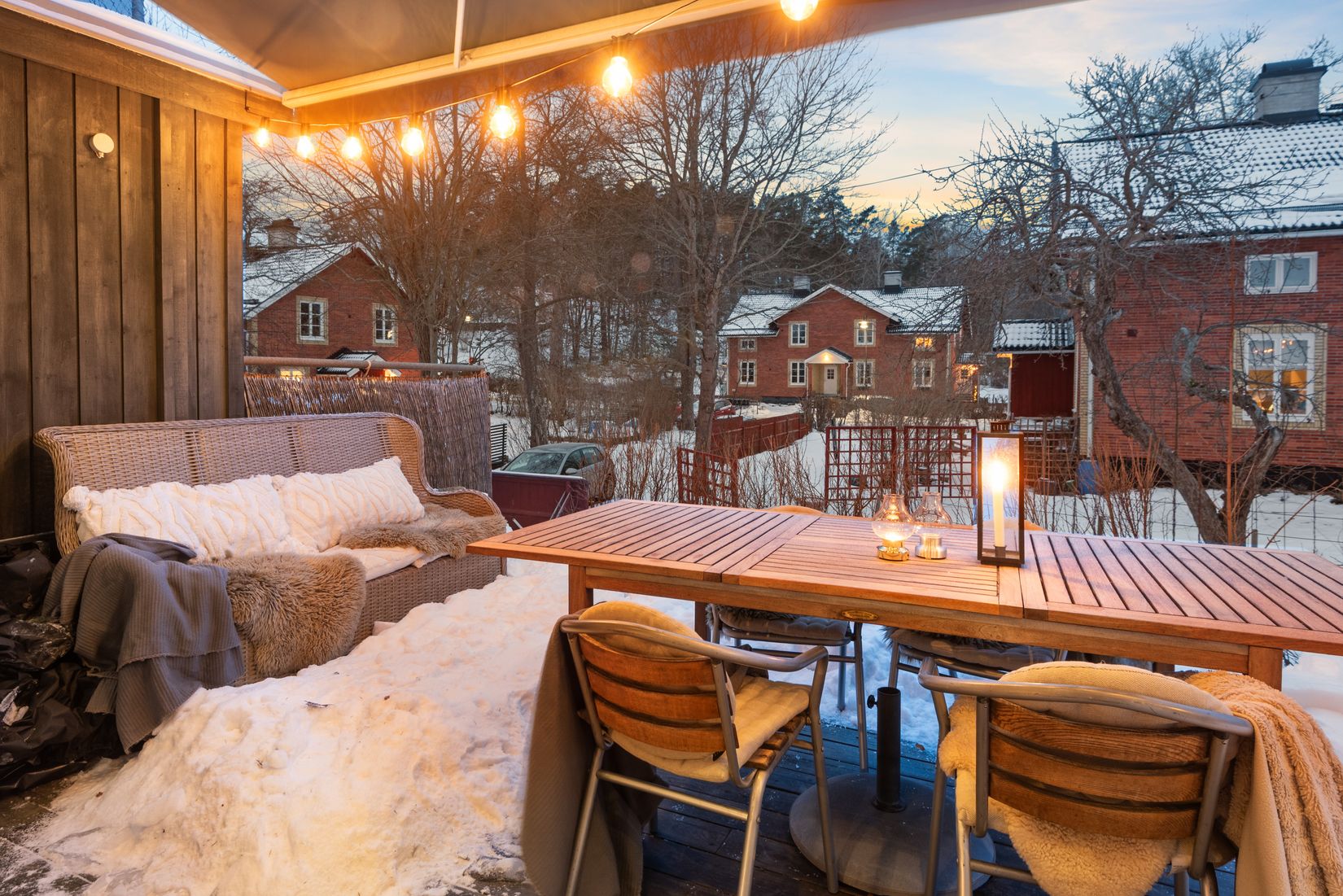 Ljus och fin med fyra uteplatser i olika väderstreck i form av takterrass, balkong samt altan i lä.