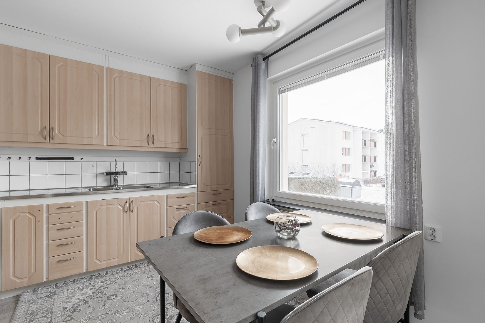 Lägenheten har genomgående fräscha parkettgolv i samtliga rum förutom sovrummen, vilket ger ett enhetligt och lättmöblerat intryck. Köket är funktionellt utformat med bra arbetsytor och förvaring och kan med enkla medel fräschas upp för att sätta en mer modern prägel. Det stambytta badrummet är stilrent och förberett för tvättmaskin, vilket ger extra bekvämlighet i vardagen. Förvaringsmöjligheterna är generösa med flera lösningar inne i bostaden samt ett tillhörande källarförråd som kompletterar boendet på ett praktiskt sätt.