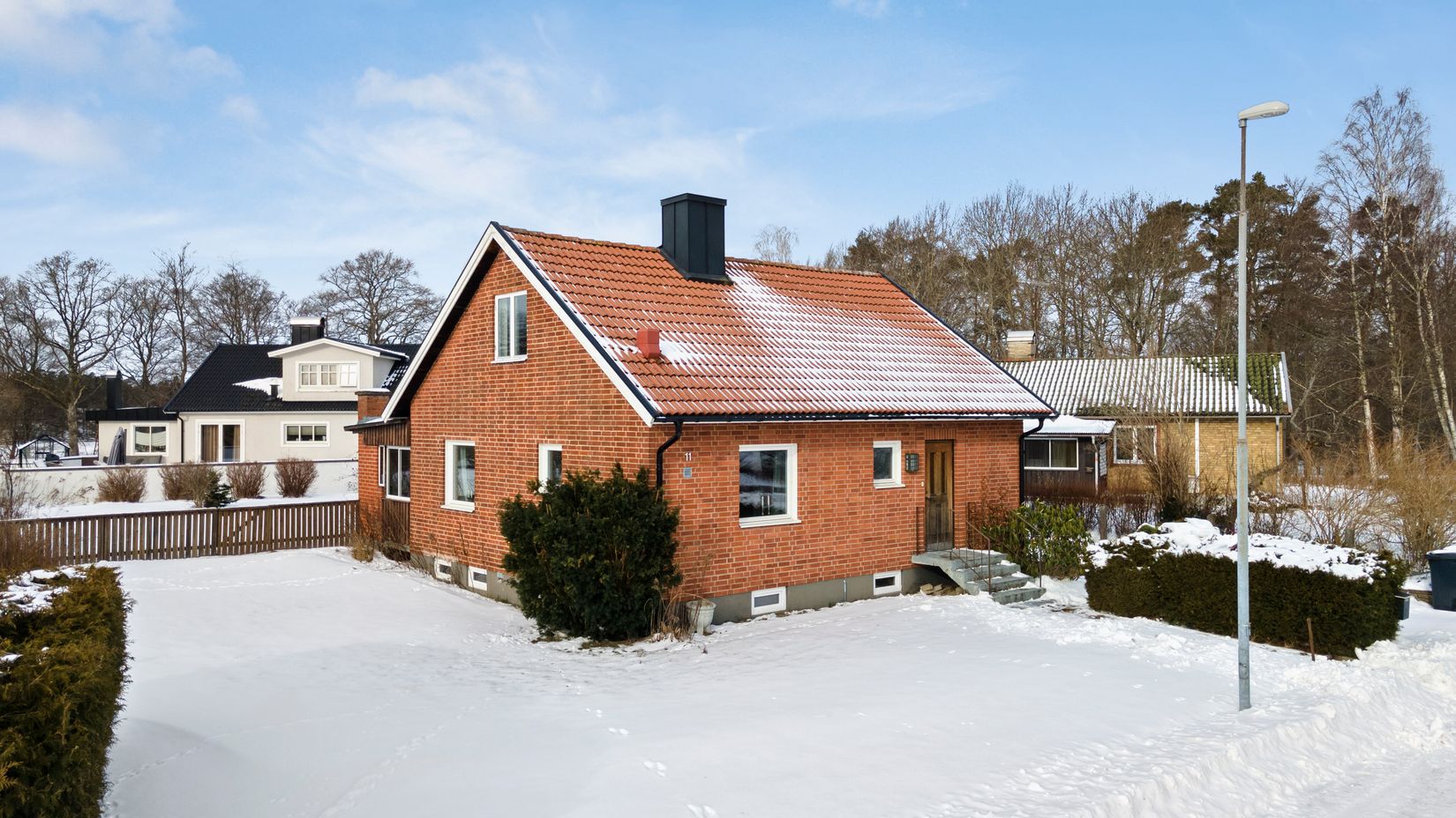 Den trevliga trädgården bjuder in till avkoppling och umgänge med en uteplats på trädäck samt ett inglasat uterum med kamin – en plats att njuta av året runt. Här bor du med närhet till sjöar och fina strövområden, samtidigt som affär och tågstation nås på bekvämt promenadavstånd. Ett hem som kombinerar livskvalitet, natur och goda kommunikationer