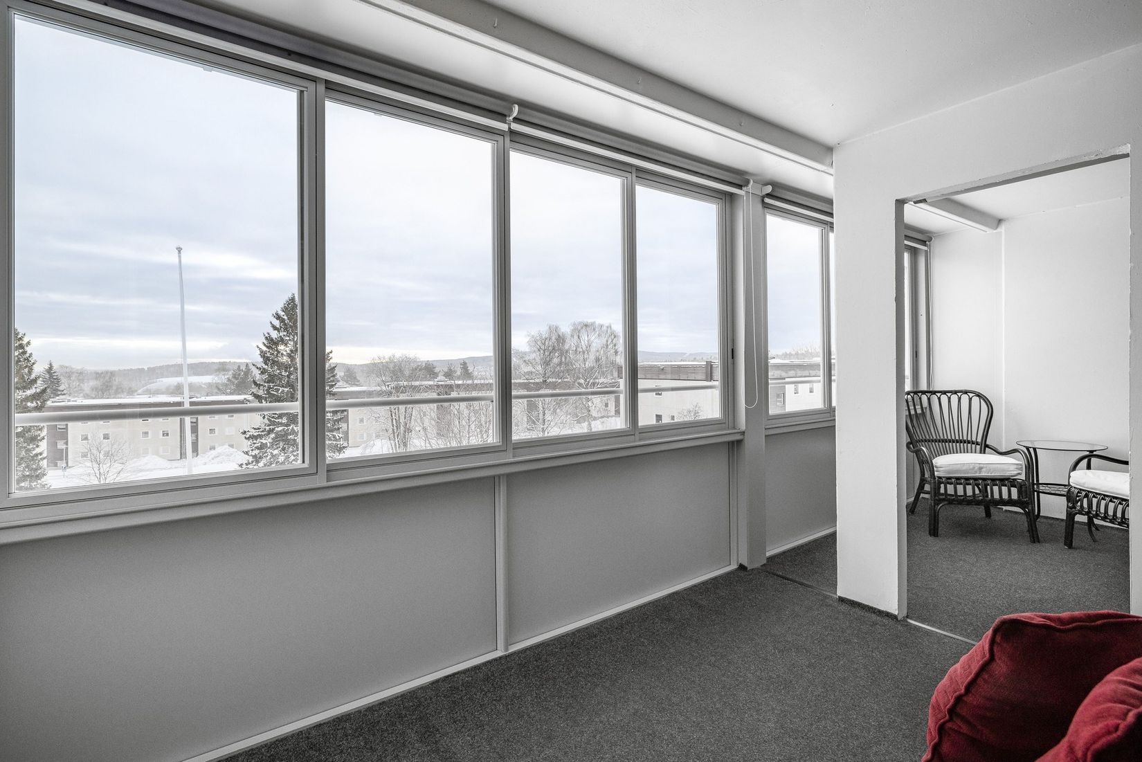 Högst upp med otrolig utsikt från vardagsrum och den stora balkongen. En klassisk fyra i planlösningen i ett hus som står fritt från de övriga huskropparna i föreningen och har närhet till lekytor och grönområden.