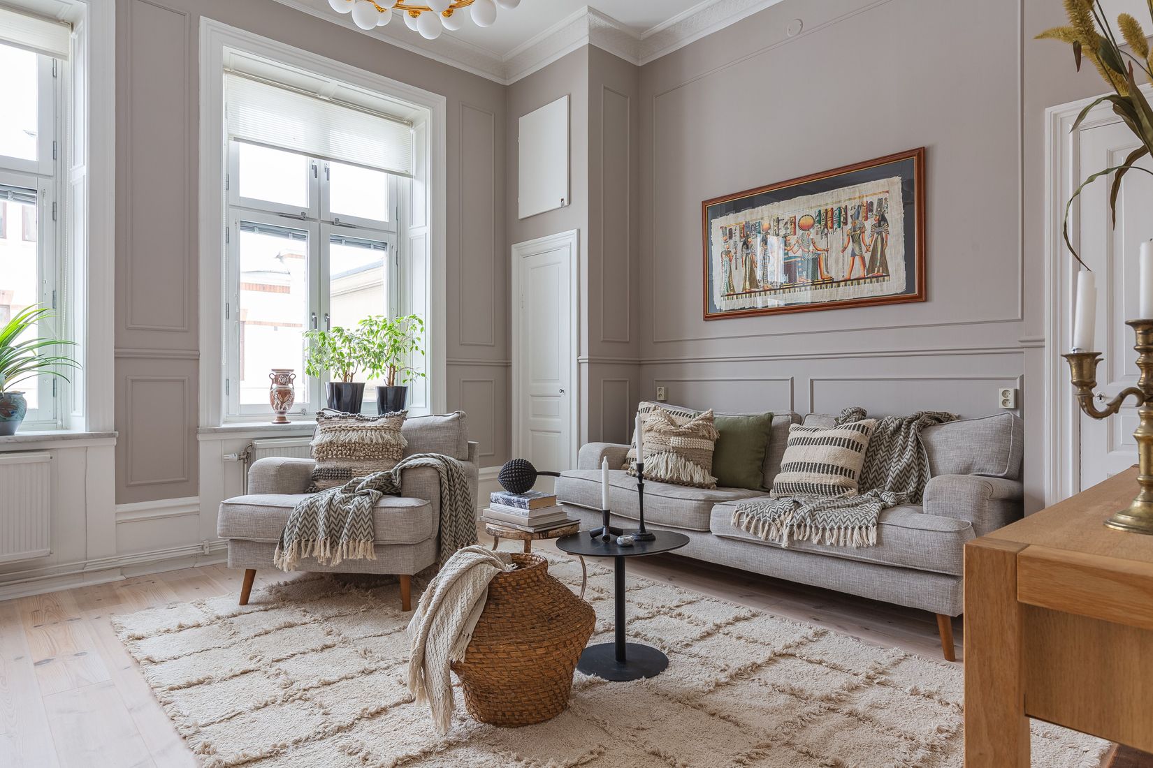 Välkommen till en sällsynt möjlighet att förvärva en stilfull sekelskiftes lägenhet på attraktiva Staketgatan 3 – en av Gävles mest eftertraktade adresser. Här möts tidlös elegans från tidigt 1900-tal med modern komfort i en bostad som är lika vacker som funktionell. Belägen på våning 2 av 5 med hiss erbjuds denna välplanerade 2 rok om 59,5 kvm som inte lämnar något att önska. Den generösa takhöjden om ca 3,3 meter skapar en luftig och exklusiv känsla, förstärkt av bevarade originaldetaljer såsom spegeldörrar, höga golvlister och vackra trägolv. Allt harmoniskt kombinerat med nutida bekvämligheter i form av platsbyggda garderober, ett välutrustat kök samt ett stilrent badrum med egen tvättmaskin. Vardagsrummet imponerar med sina höga fönsterpartier och en rogivande vy mot Boulognerskogen. Sovrummet är lugnt beläget mot innergården och hallen välkomnar med utmärkta förvaringsmöjligheter och sätter tonen för bostadens genomtänkta planlösning.
