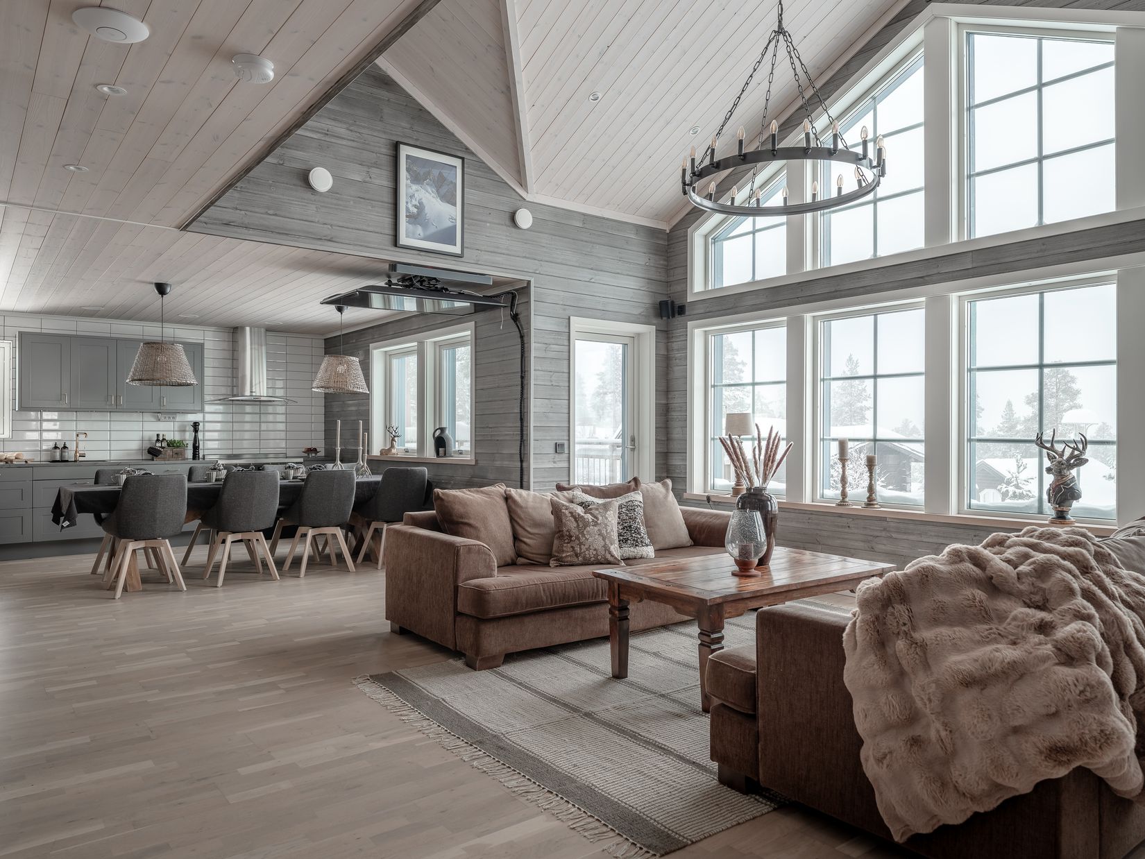 Materialvalen är fjällanpassade och präglas av en genomarbetad helhet där kvalitet och estetik går hand i hand. Detaljerna är valda med omtanke för att skapa ett tidlöst, harmoniskt och påkostat boende. Huset är skapat för att användas under helger, lov och längre vistelser, där fjällivet får ta plats med hög komfort och kvalitet. Funktionaliteten förstärks ytterligare av energieffektiv bergvärme i kombination med FTX-ventilation.