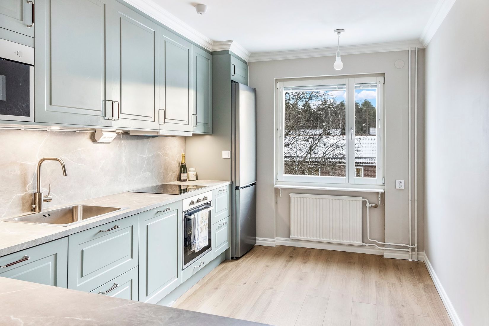 Nu ges ett sällsynt tillfälle att förvärva en renoverad och stilren trea i absolut toppskick med attraktivt gavelläge som ger ett fantastiskt ljusinsläpp och en luftig känsla genom hela bostaden.