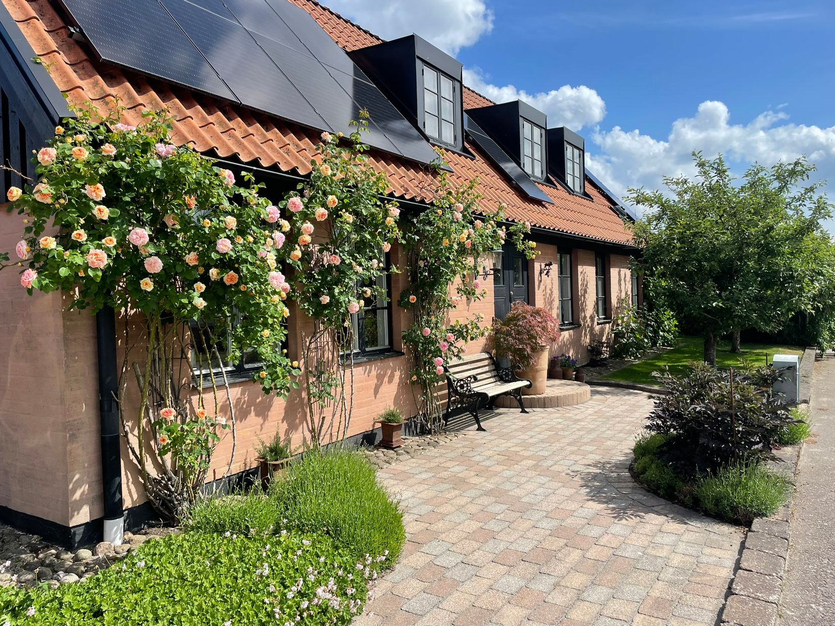 en helt unik och insynsskyddad trädgård om 742 m² – en grön oas som överraskar. Redan vid framsidan möts du av doftande Alchymist-rosor och välkomnande planteringar som sätter tonen. Bakom huset öppnar sig en skyddad innerträdgård i flera rum, med sol hela dagen och långt in på kvällen. Här finns pergola med vinranka, riklig rosblomning, ett vackert växthus som används både för odling och måltider, samt ett generöst utekök med vatten. Trädgården ramas in av tät avenbokshäck och bjuder på formklippta äppelträd, pool med stort trädäck, genomtänkta planteringar och fina odlingsmöjligheter. En ytterst välmående trädgård som vuxit fram under många år. Bostaden erbjuder ett hem med känsla och med ytterst väldisponerad utformning med ett nyare kök i vacker design, matplatsen är otroligt vacker med fönsterpartier mot trädgården och med massor av ljusinsläpp. Köket är uppbyggt av en matlagningsentusiast och har en spis från Bertazzoni med dubbla ugnar, spishäll med 5 värmezoner och en fläkt från Fjäråskupan, övriga vitvaror är integrerade. Rymligt vardagsrum med sprakande kamin som ger en underbar känsla och värme, vackra, ljusa enstavs parkettgolv. Två sovrum på nere varav ett är omgjort till walk in closet. Badrum med badkar och en praktisk tvättstuga med utgång till baksidan. Ovanvåningen erbjuder två sovrum, ett allrum i mitten och ett badrum med dusch och bastu. Ett hus där du kan samla dina vänner för trevliga stunder både sommar och vintertid! Här finns ett garage med förråd och god plats på uppfarten för bilar. Solceller installerade 2022. Här är det bara att flytta in och njuta. Gångavstånd till skola, affären, tågstationen och den underbara naturen. Varmt välkomna för en visning på detta riktigt trivsamma hem!