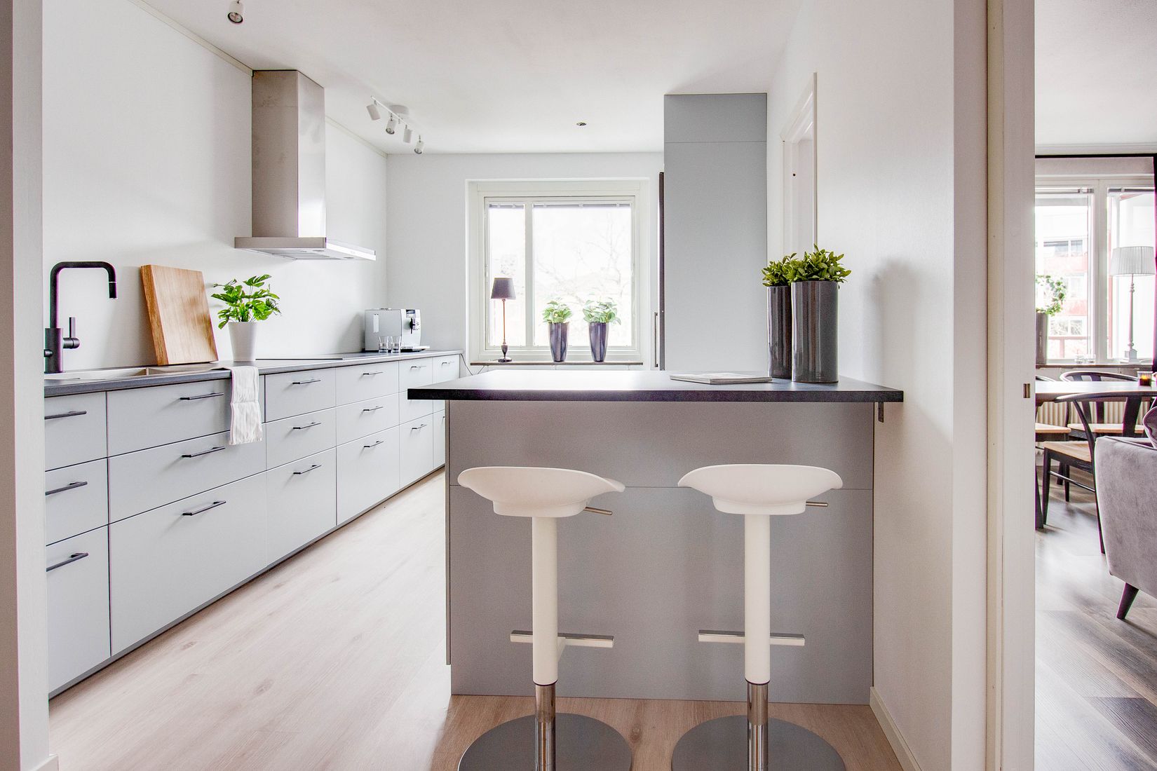 På andra våningen möts du av en inbjudande bostad där ljuset flödar genom rummen. Hallen har en praktisk garderob som ger gott om förvaring och är helt öppen mot det totalrenoverade köket. Här finns smart arbetsyta, moderna materialval och en naturlig plats för matlagning och vardagsliv. Vidare till vardagsrummet, ett luftigt och lättmöblerat rum med plats för både soffa och matbord. Härifrån når du även den trevliga balkongen, perfekt för morgonkaffet eller en lugn stund i solen. Till vänster ligger det rymliga sovrummet med utrymme för dubbelsäng och förvaring. Intill finns det fräscha WC/Dusch-rummet, utrustat med tvättmaskin för extra bekvämlighet.