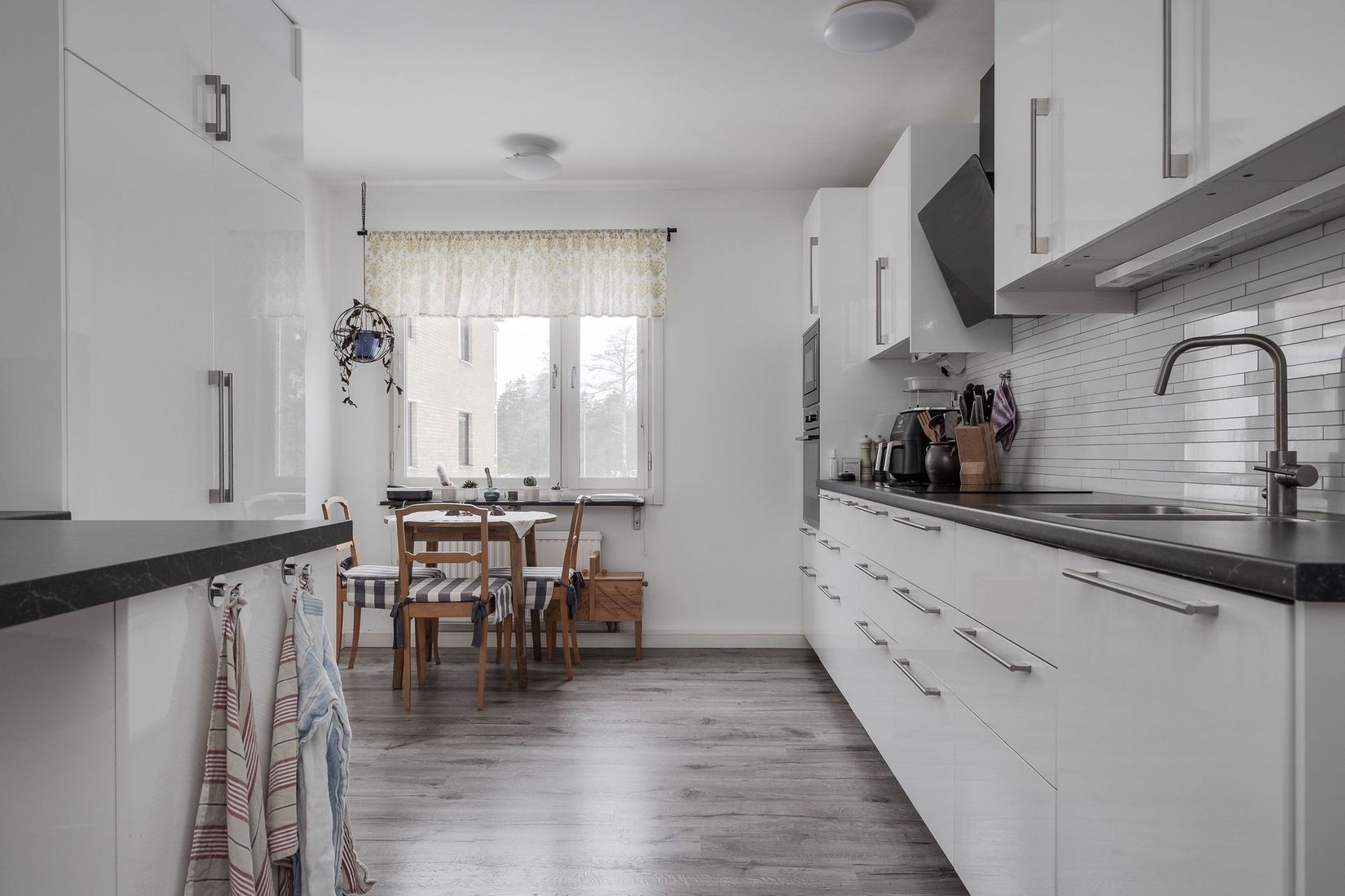 Köket som renoverades 2018 har öppnats upp mot hallen och vardagsrummet, vilket skapar ett öppet och ljust intryck av lägenheten. Här erbjuds det en generös mängd med bänkyta, vilket gör matlagning och förberedelser till en fröjd. Som en förlängning av bostaden finner ni en inglasad balkong där det finns gott om plats för att möblera med en sittgrupp. Bostaden erbjuder tre rofyllda sovrum med goda möbleringsmöjligheter, vilket gör hemmet perfekt för såväl familjen som för dig som önskar hemmakontor eller gästrum. Förvaringsmöjligheterna är goda tack vare en praktisk klädkammare. Som ett extra plus finns en separat gästtoalett – en uppskattad detalj som förenklar både familjeliv och när du har besök. Bostadens badrum är stilrent och utrustat med dusch.
