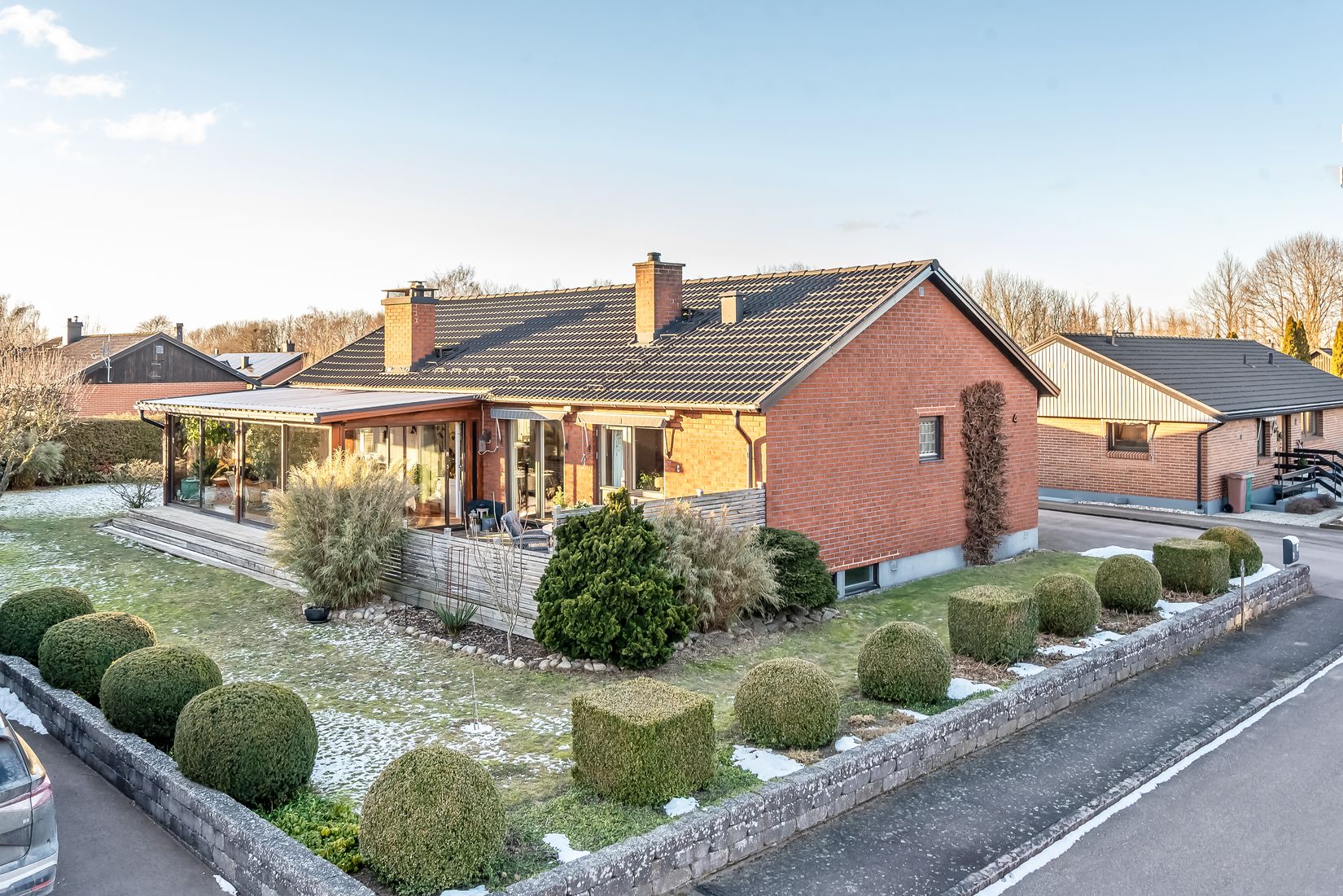 Den välskötta trädgården vittnar om ett stort trädgårdsintresse hos nuvarande ägare. Här finns uteplatser både i söder på trädäck och i väster på stensatt yta, gräsmatta för lek och ett växthus för den odlingsintresserade. Bilen parkerar du smidigt i garaget eller på uppfarten.