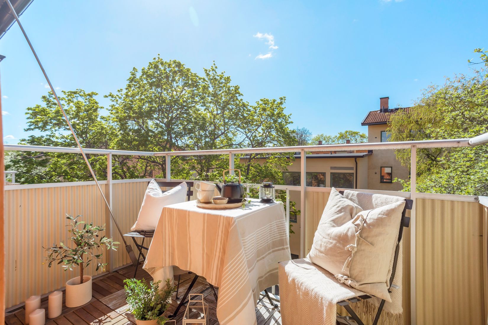 Varmt välkommen till denna ljusa och fräscha tvåa med balkong i perfekt söderläge med en fantastisk utsikt över takåsarna!