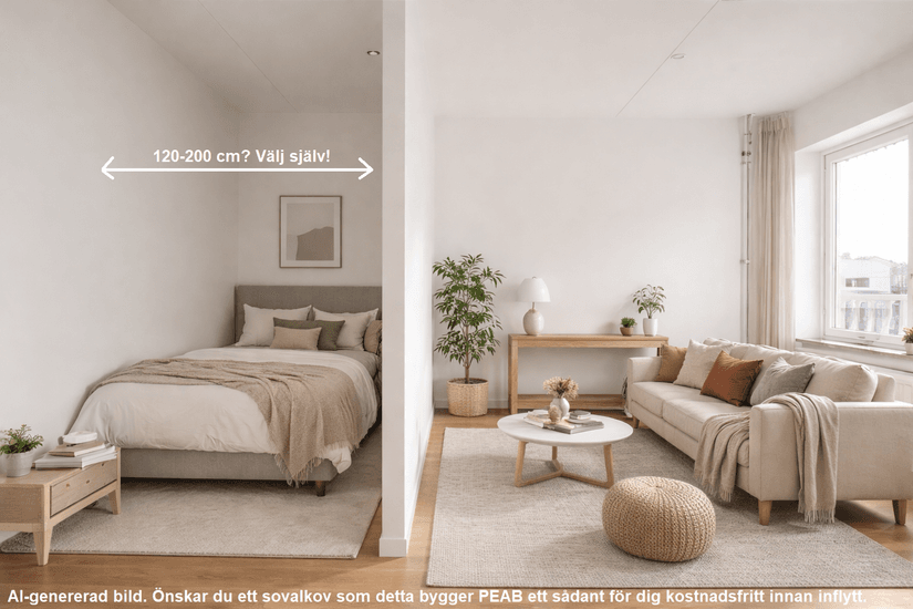Observera att lägenhetens pris egentligen är 1,950,000kr men har sänkts med 200,000kr. Därtill tillkommer 12 månaders avgiftsfritt samt möjligheten att lägga till en vägg i vardagsrummet vilket gör den till en 1,5:a. Du får vara med i planeringen var den ska placeras - om du vill ha plats med t.ex. en 120-säng eller 160-säng?