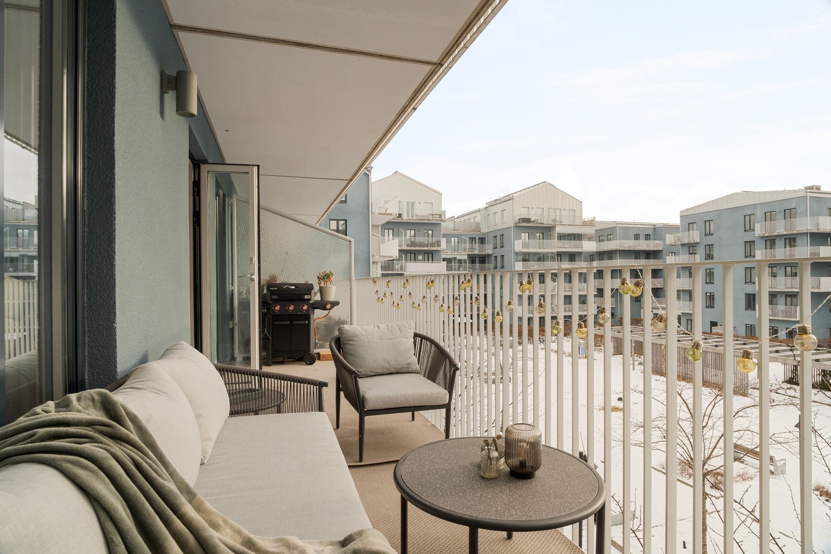 Ljusa välkomnande ytor i denna stilfulla tvåa, belägen mitt i Barkarbystadens moderna stadsmiljö med närhet till såväl vacker natur, shopping och badstränder i Mälarens vatten. Smakfullt utformad bostad med två balkonger i varsitt väderstreck där ni kan följa solens värmande strålar ända från morgon till kväll. Genomgående social planlösning med pardörrar i glas som skärmar av mellan vardagsrum och kök, exklusiva materialval i harmonisk färgsättning samt fint parkettgolv som löper genom bostaden. Här bor ni med ett svårslaget ljusinsläpp via väl tilltagna fönsterpartier i två väderstreck och välplanerade ytor med praktiska förvaringsutrymmen. Trendigt platsbyggt kök i vitt utförande fullutrustat med integrerarde vitvaror, öppna bänkytor och slitstarkt stänkskydd med vacker marmorering. Optimal planlösning möjliggör för en flexibel möblering med både soffgrupp och matplats intill fönster med fri utsikt.