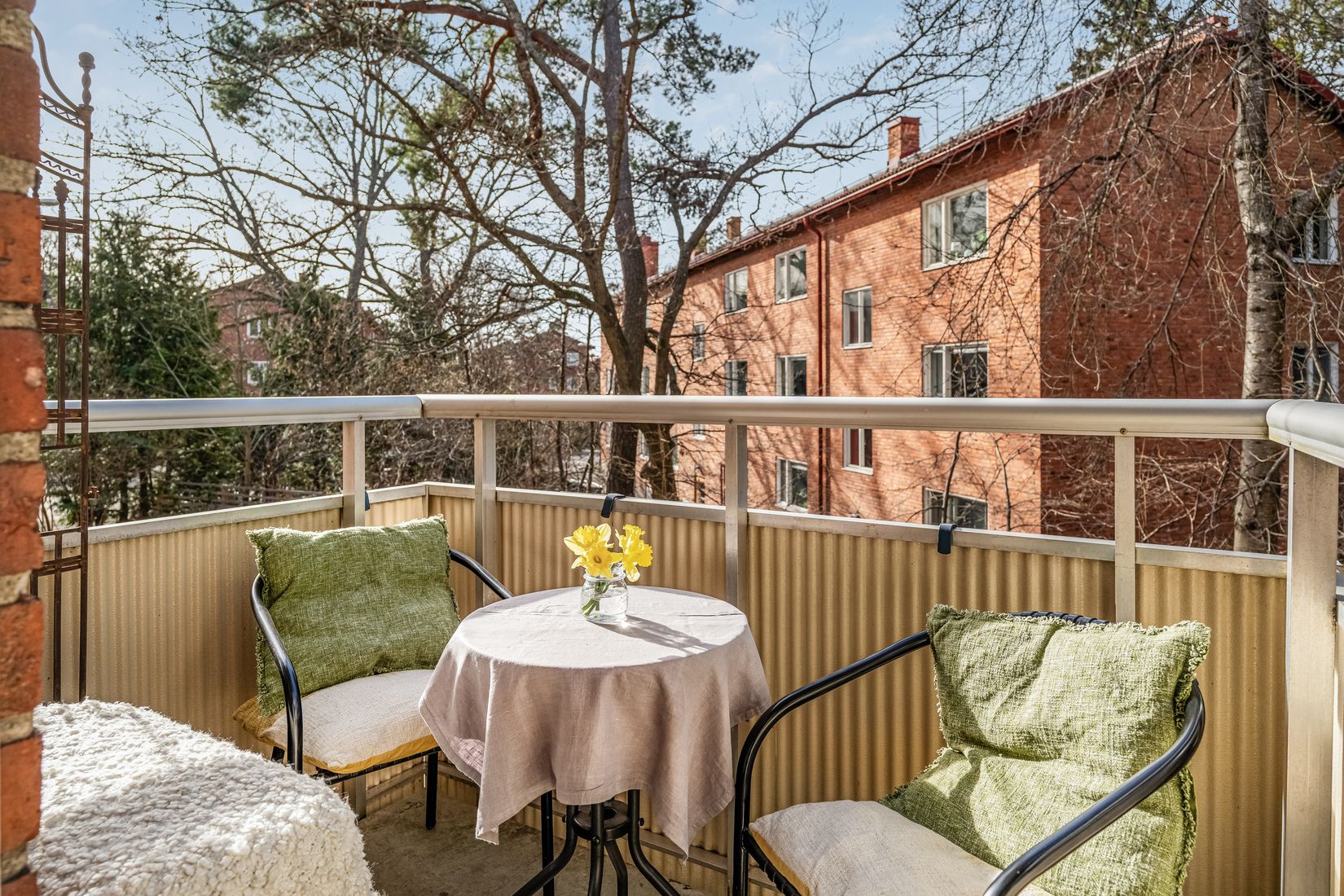 Genomgående smakfulla och ljusa ytskikt med målade väggar i vardagsrum samt ljusa trägolv. Ljust kök med öppen del mot vardagsrum vilket ger både en social planlösning och ytterligare ljus och rymd. Köket är rymligt med bra arbetsyto, gott om förvaring samt att matplats finns. Fräscht, stambytt badrum med kaklade väggar, klinkergolv, wc, duschplats och bra förvaring. Ljust och luftigt vardagsrum med fint parkettgolv och lättmöblerade ytor för sällskapsmöbler. Från vardagsrum är det utgång till trevlig balkong med perfekt västerläge mot lummiga träd och med eftermiddagssol. Trivsamt och rofyllt sovrum med plats för stor säng och förvaring. Bra förvaringsmöjligheter genom flera garderober samt källarförråd.