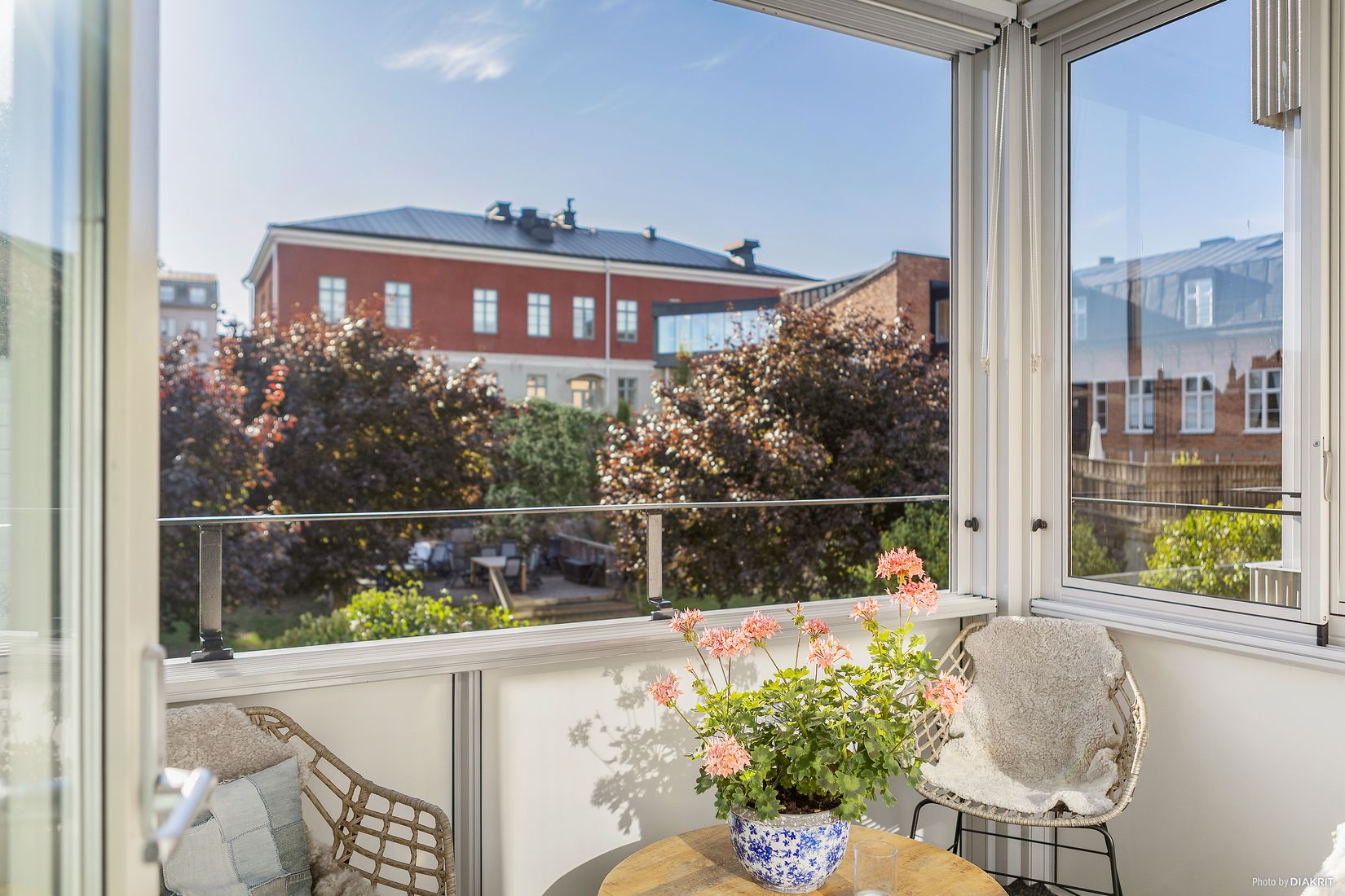Ljus och trevlig bostadsrätt med fönster i två väderstreck och vardagsrum med utgång till inglasad balkong i västerläge.