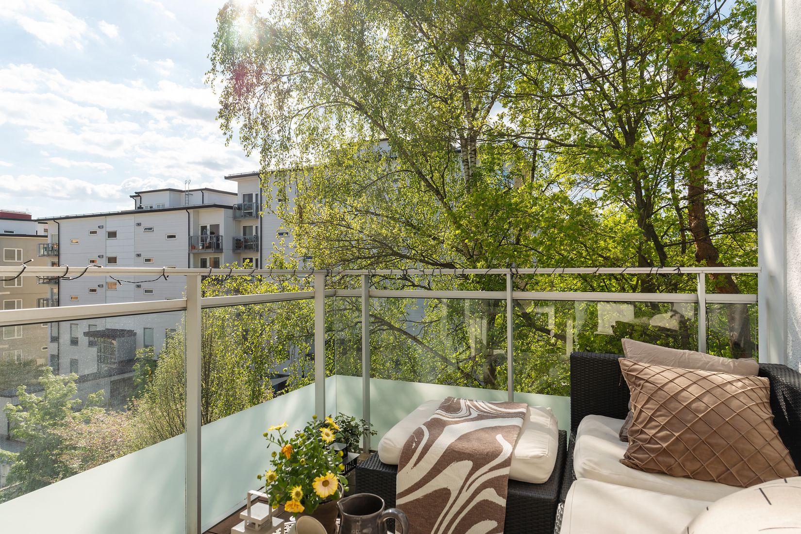 Välplanerad 3:a högt upp i huset! Dubbla balkonger varav en där kvällssolen lyser och grill tillåts och den andra inglasad med morgonsol. Öppen planlösning mellan kök och vardagsrum som möjliggör för socialt och härligt umgänge. Två bra sovrum med en klädkammare som separerar dem och ett stort & fräscht badrum med badkar och tvättpelare. Superb förvaring i såväl klädkammare som flera garderober i hallen och det ingår även ett stort förråd! Tack vare det höga läget ges här minimal insyn samt gott om ljusinsläpp tack vare fönster i två soliga vädersterck.