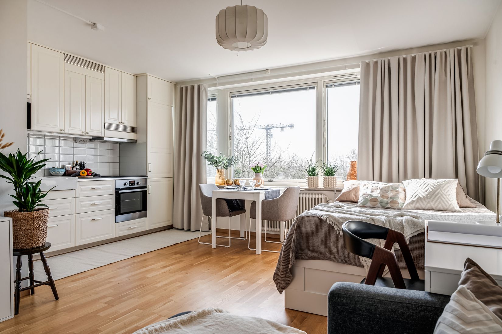 När du kliver in i denna mysiga etta märks det snabbt att varje kvadratmeter är väl utnyttjad för att skapa ett bekvämt och harmoniskt hem. Lägenheten är belägen på våning 2 och bjuder på en vacker utsikt som skapar en luftig och rogivande känsla. För dig som kollar noga en vacker dag syns siluetten av både Turning Torso och Öresundsbron, vilket är unikt. Den genomtänkta planlösningen ger plats för både säng, soffa, skrivbord och matplats, vilket gör bostaden lika väl anpassad för vardagens lugn som för trevliga stunder tillsammans med vänner.