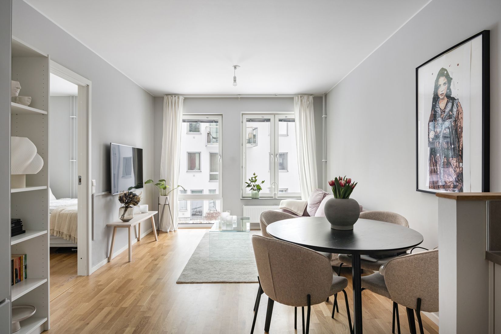 Välkommen till en charmig lägenhet med ljusa rum och en harmonisk atmosfär. Bostaden erbjuder ett modernt och funktionellt kök med full maskinell utrustning, ett rofyllt sovrum med praktisk klädkammare som ger utmärkta förvaringsmöjligheter samt ett fräscht badrum med egen tvättmaskin. Det lättmöblerade vardagsrummet bjuder in till både umgänge och avkoppling. Till lägenheten hör även ett källarförråd, vilket ger extra förvaringsutrymme. Här får du ett hem som kombinerar stil, komfort och funktion på ett sätt som gör det lätt att trivas från första stund.