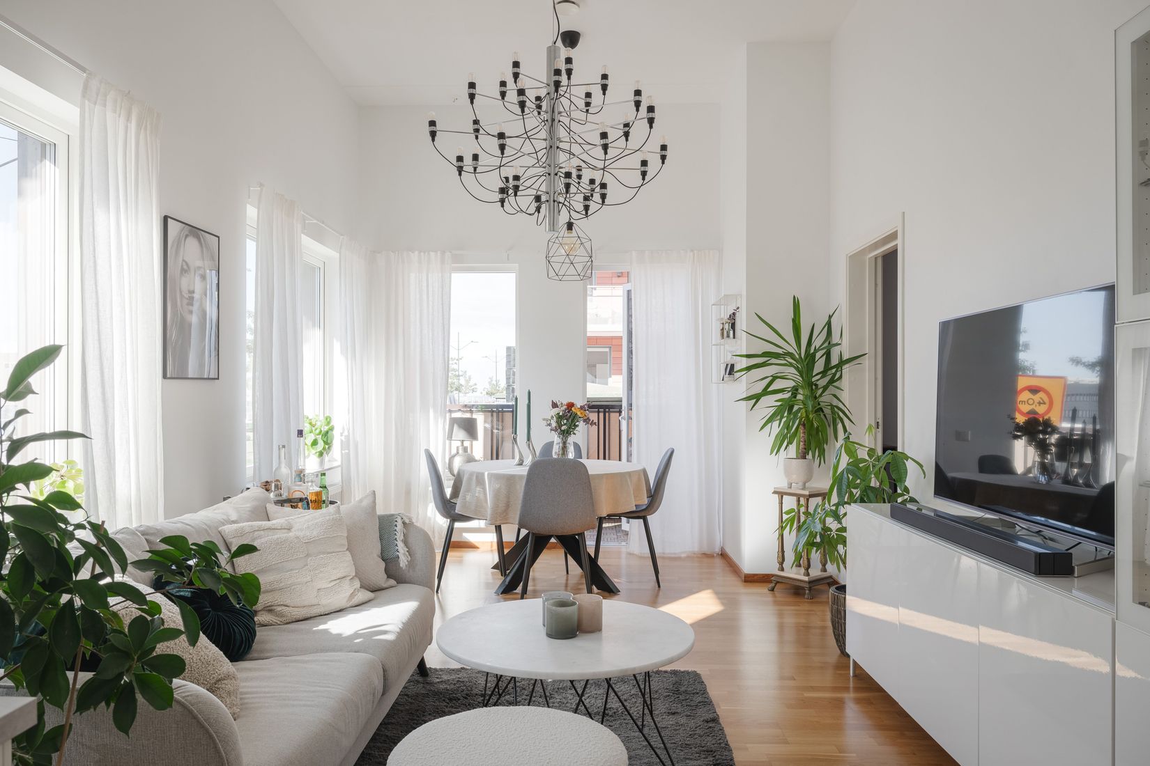 Från vardagsrummet nås den trivsamma balkongen i nordvästläge – en idealisk plats att njuta av eftermiddagssolen och lugna kvällar.