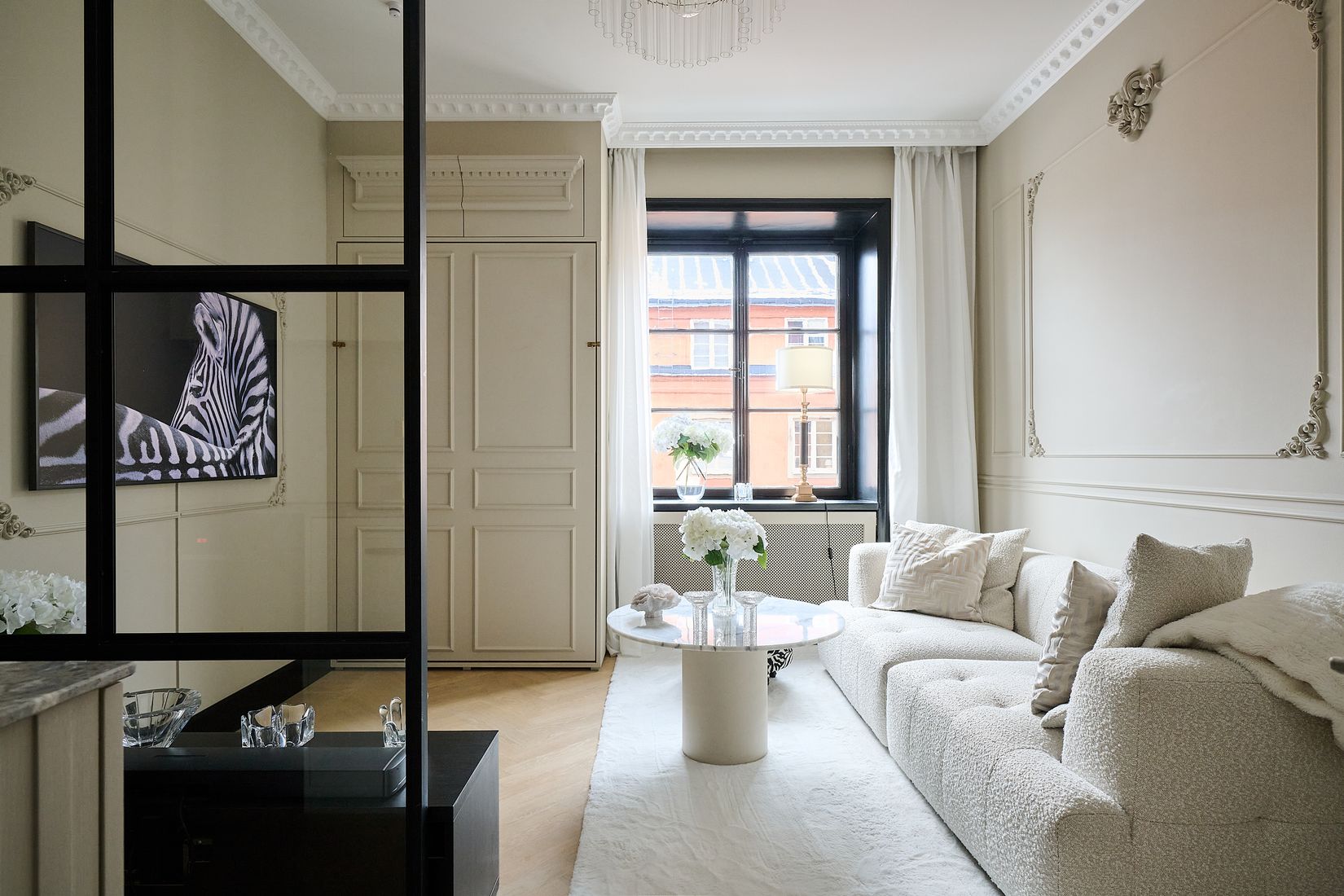 Välkommen till ett stilfullt och smart planerat hem där varje kvadratmeter är genomtänkt in i minsta detalj. Denna exklusiva etta om 21 kvm erbjuder en unik kombination av bevarade 20-talsdetaljer och moderna, påkostade materialval.