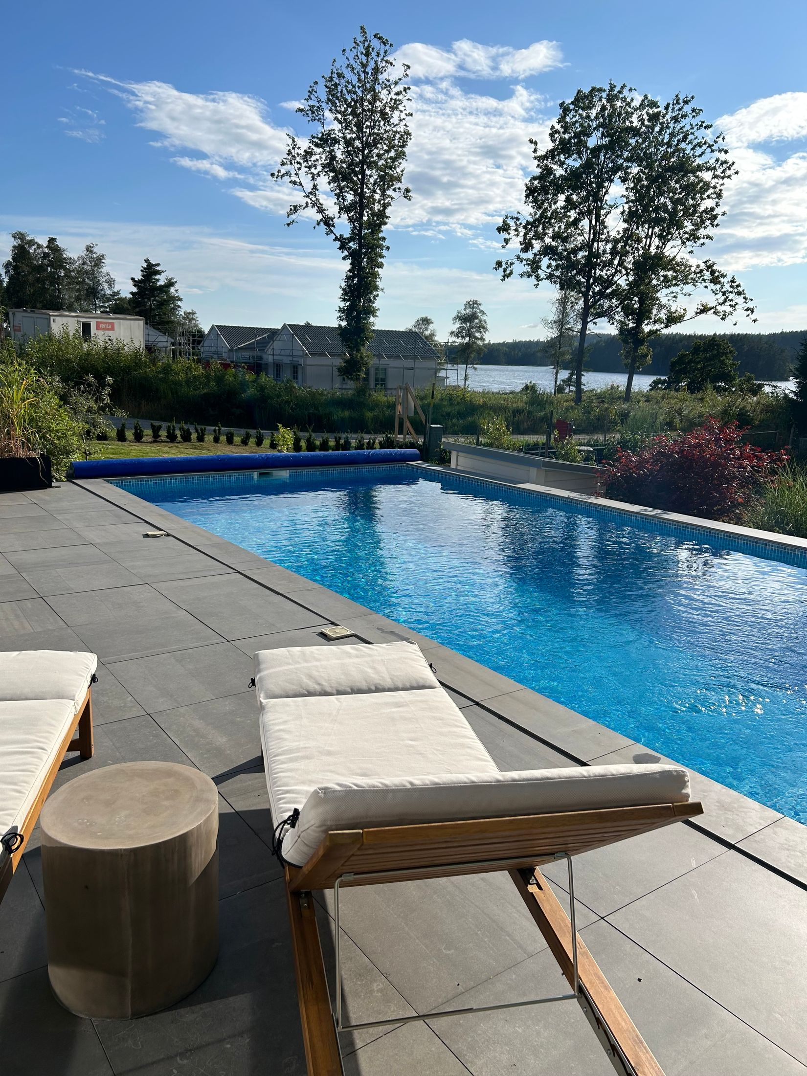 Den välplanerade trädgårdstomten erbjuder en lättskött och trivsam utemiljö med flera uteplatser i olika väderstreck, så att du kan följa solen hela dagen i en privat och skyddad miljö. Poolen med tillhörande pooldäck skapar en självklar plats för både avkoppling och sociala tillställningar. Delar av uteplatserna ligger under tak, vilket gör det möjligt att njuta av långa middagar även vid mindre gynnsamt väder.