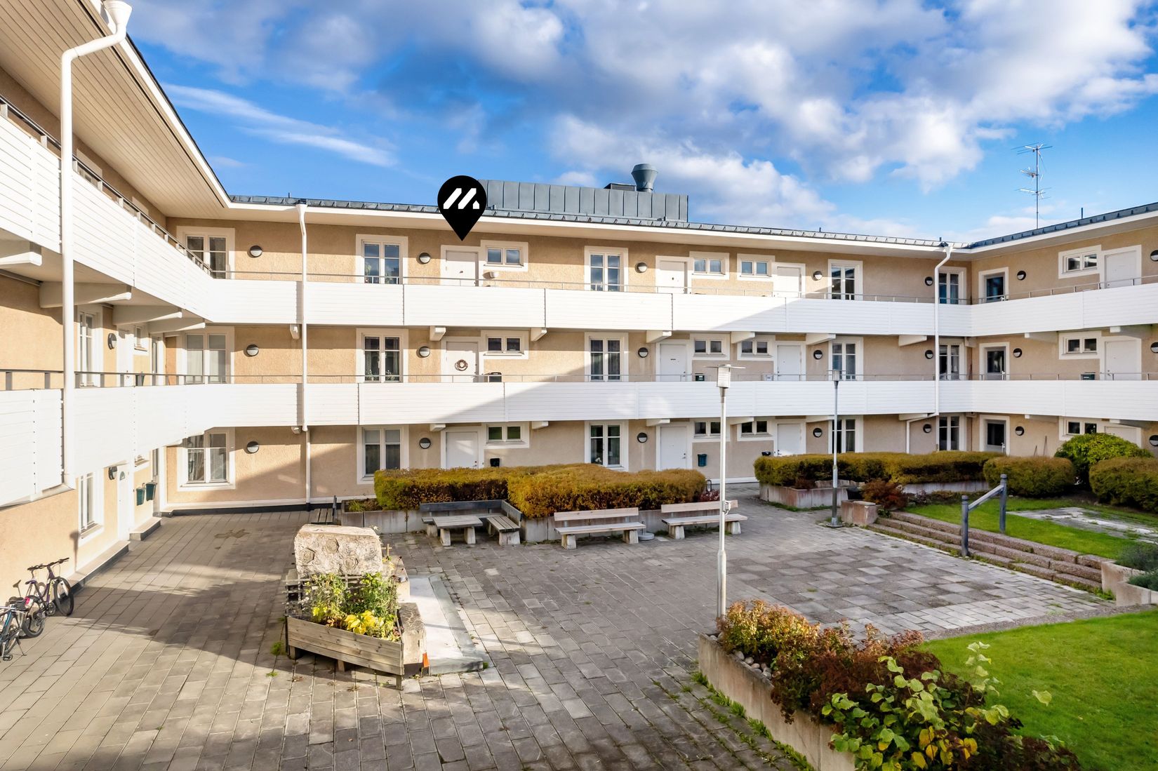 Planlösningen erbjuder rymlig hall, ljust renoverat kök, helkaklat duschrum med golvvärme, sovrum, klädkammare och stort möblerbart vardagsrum med utgång till balkong. Välskött förening med låga avgifter och hiss finns. Med varje lägenhet följer dessutom en garageplats som ingår i månadsavgiften.