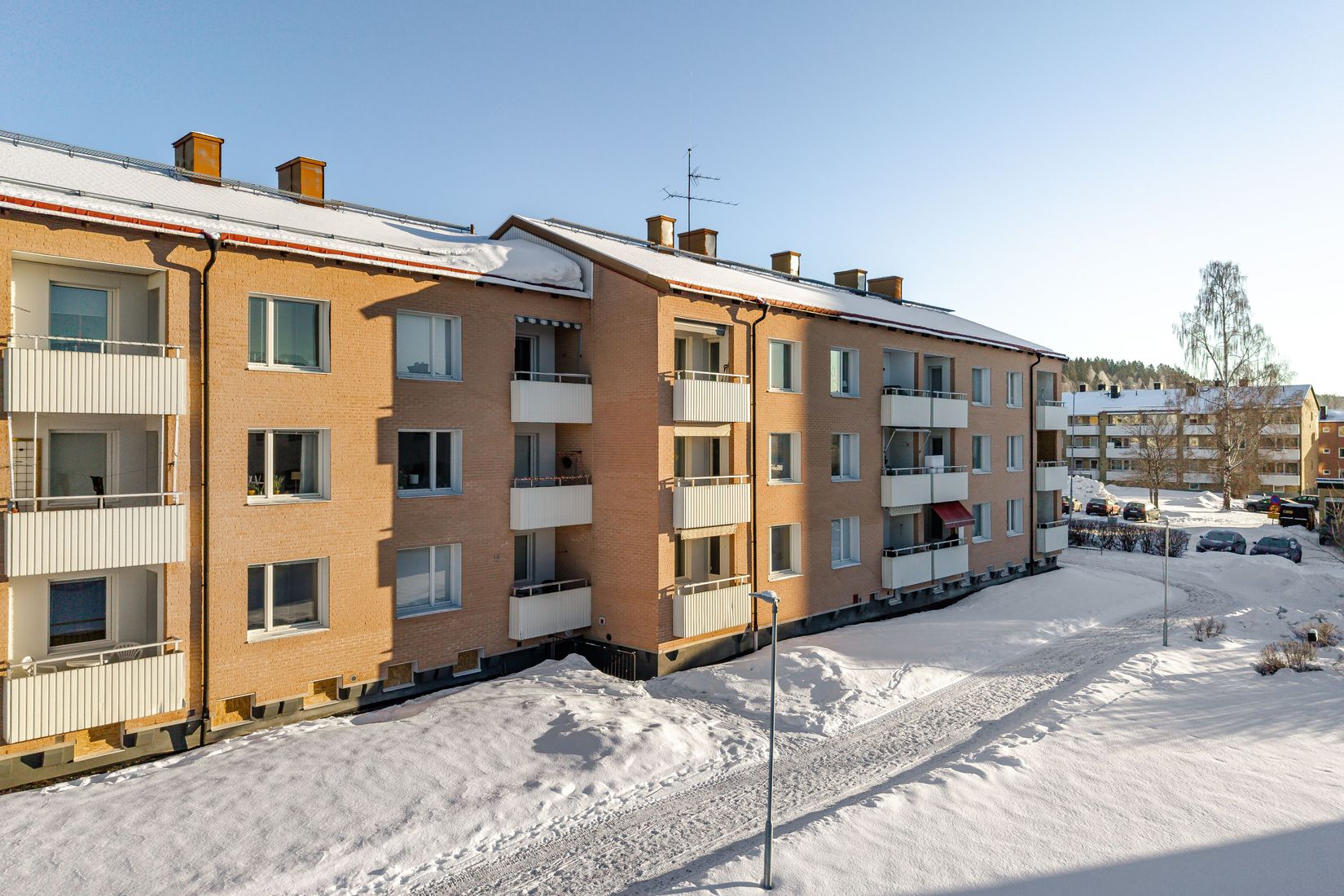 Lägenheten är belägen endast fyra trappsteg upp på första plan, vilket ger ett lättillgängligt boende. Bostaden erbjuder två rum och kök med en ljus och trevlig planlösning där fint ljusinsläpp skapar en inbjudande känsla. Vardagsrummet har utgång till en balkong med markis, en härlig plats att njuta av både morgonkaffet och varma sommardagar.